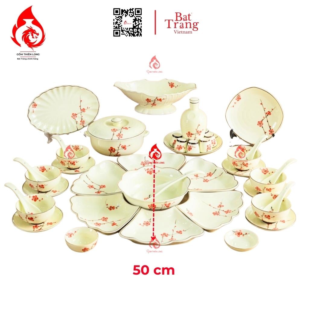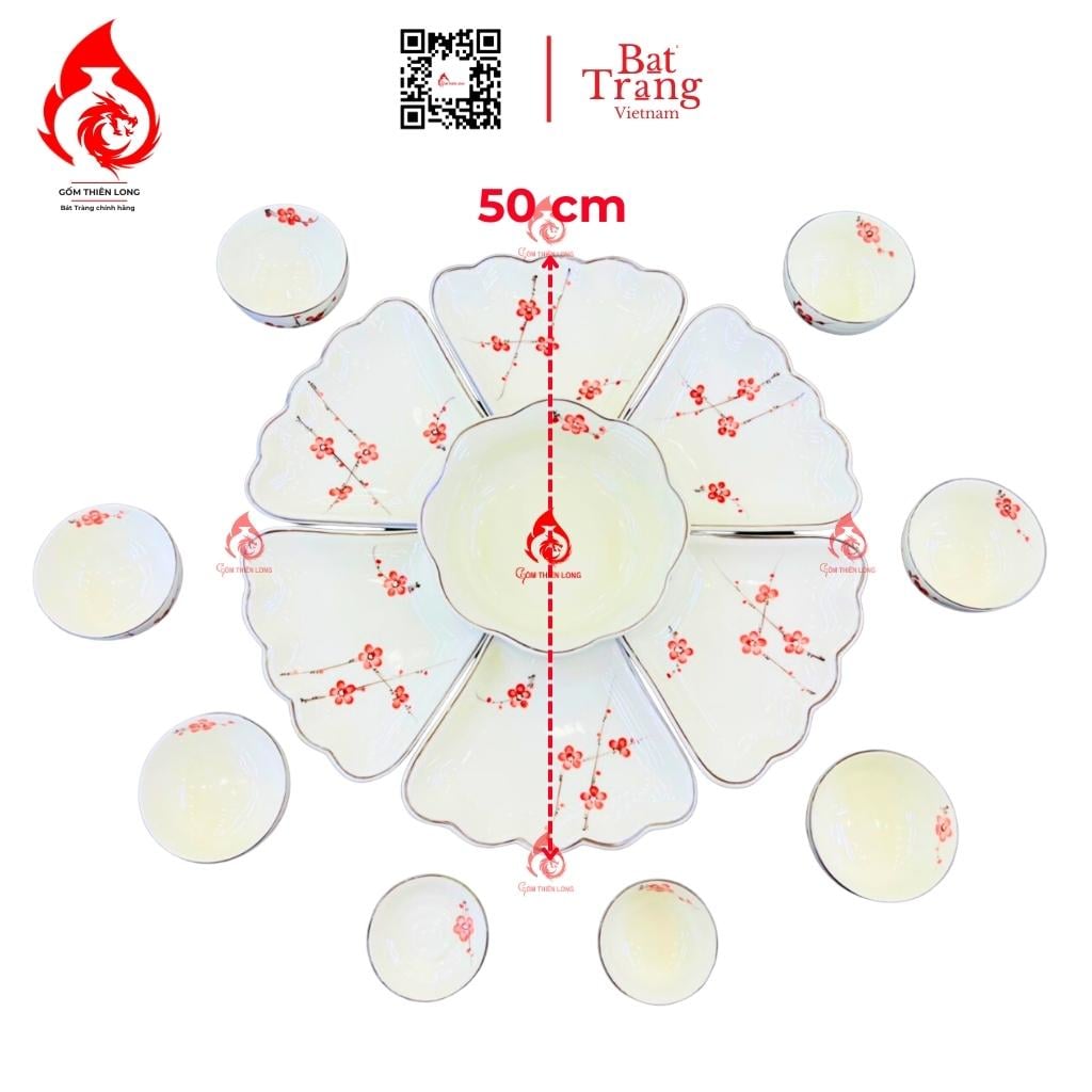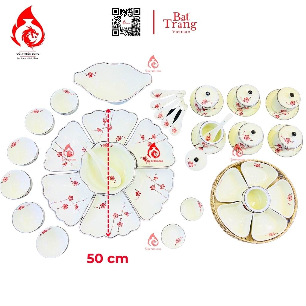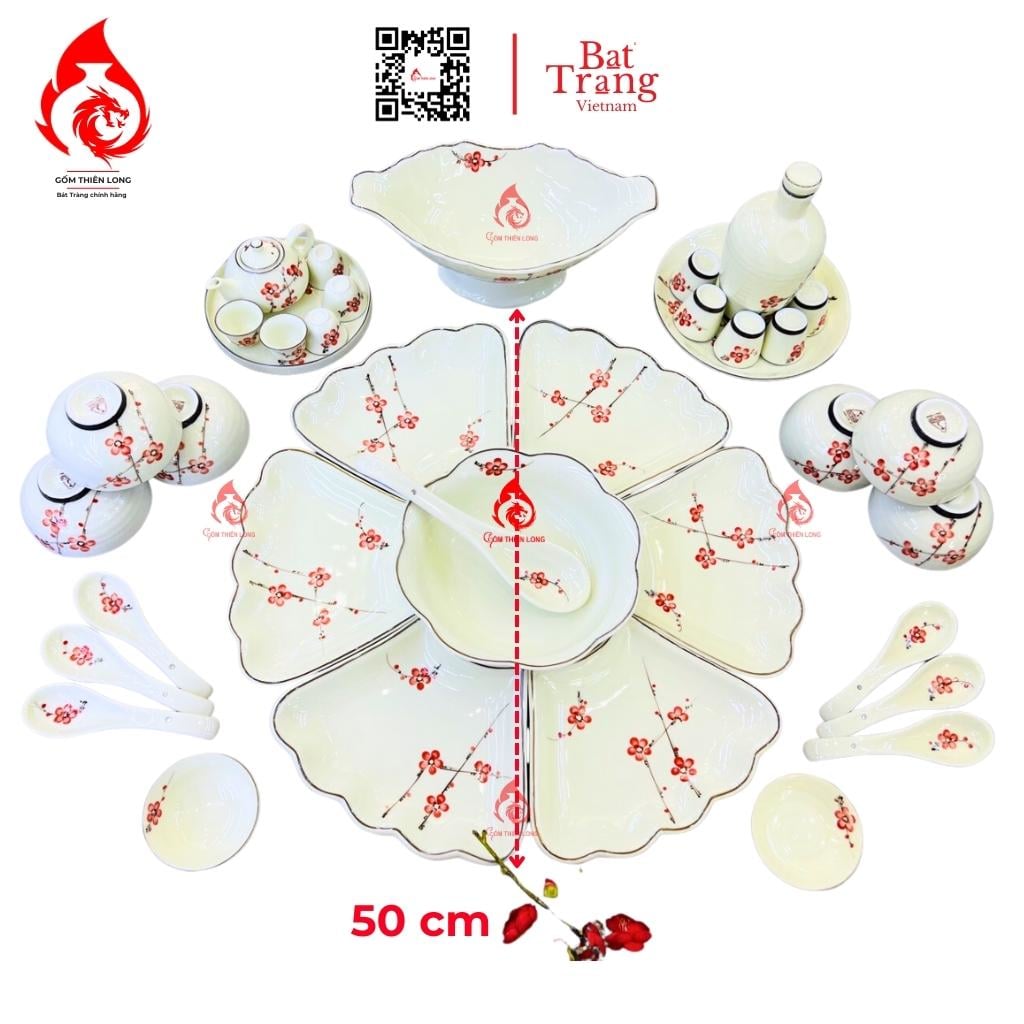 Kích thước: Bộ bát đĩa hoa mặt trời Bát Tràng vẽ đào đỏ có 2 kích thước 50cm và 60cm, bạn có thể chọn bộ bát đĩa có kích thước phù hợp với nhu cầu sử dụng của gia đình mình.