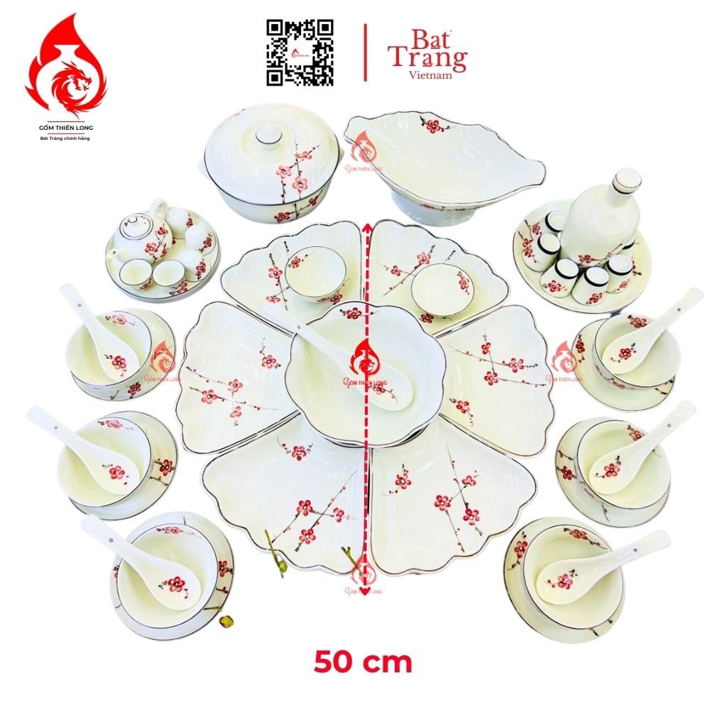 Bộ Đầy Đủ 4: Bộ 15 món - 50cm + 6 thìa, 1 muôi + bát gà + 1 bộ nậm + 1 bộ trà + 1 đĩa bầu dục + 1 âu cơm