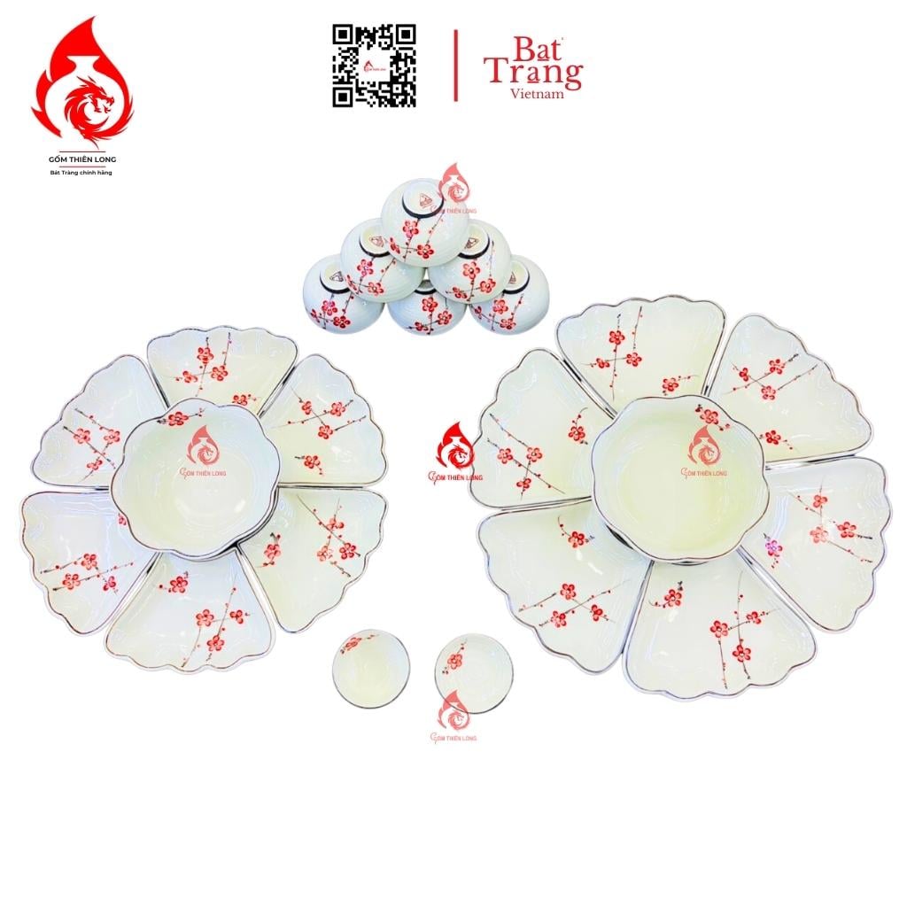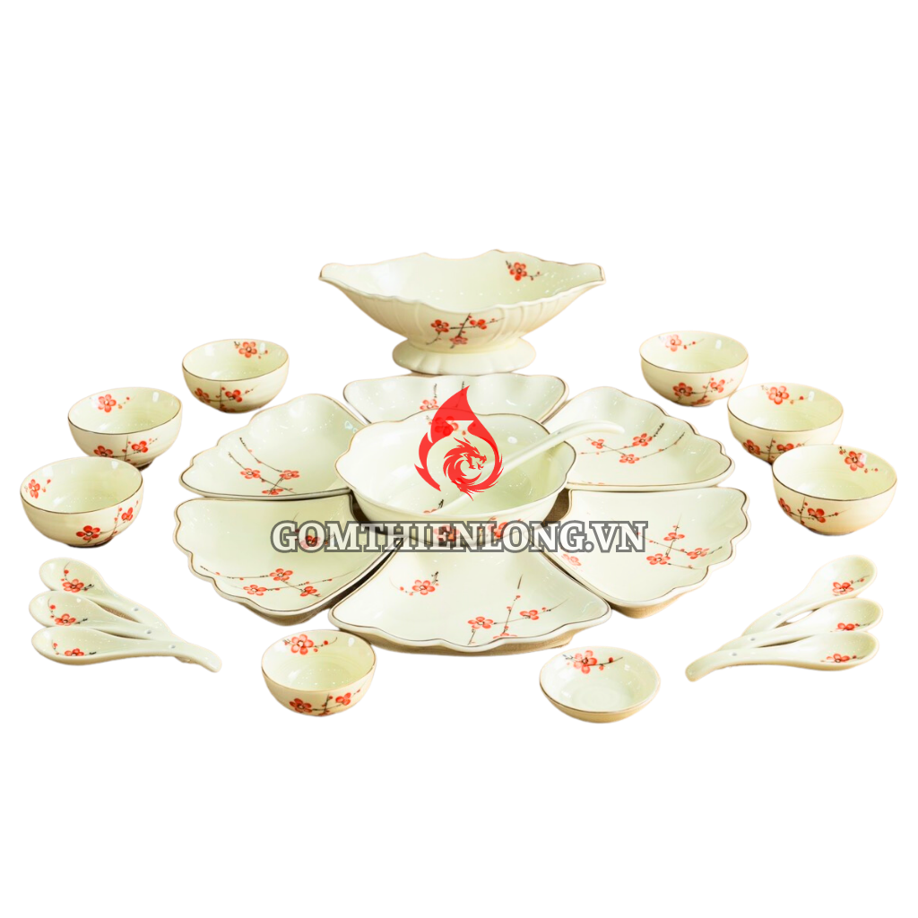 Bộ Cơ Bản: 1 bát tô - 6 đĩa cánh hoa - 6 bát cơm - 2 mắm muối (15 món )