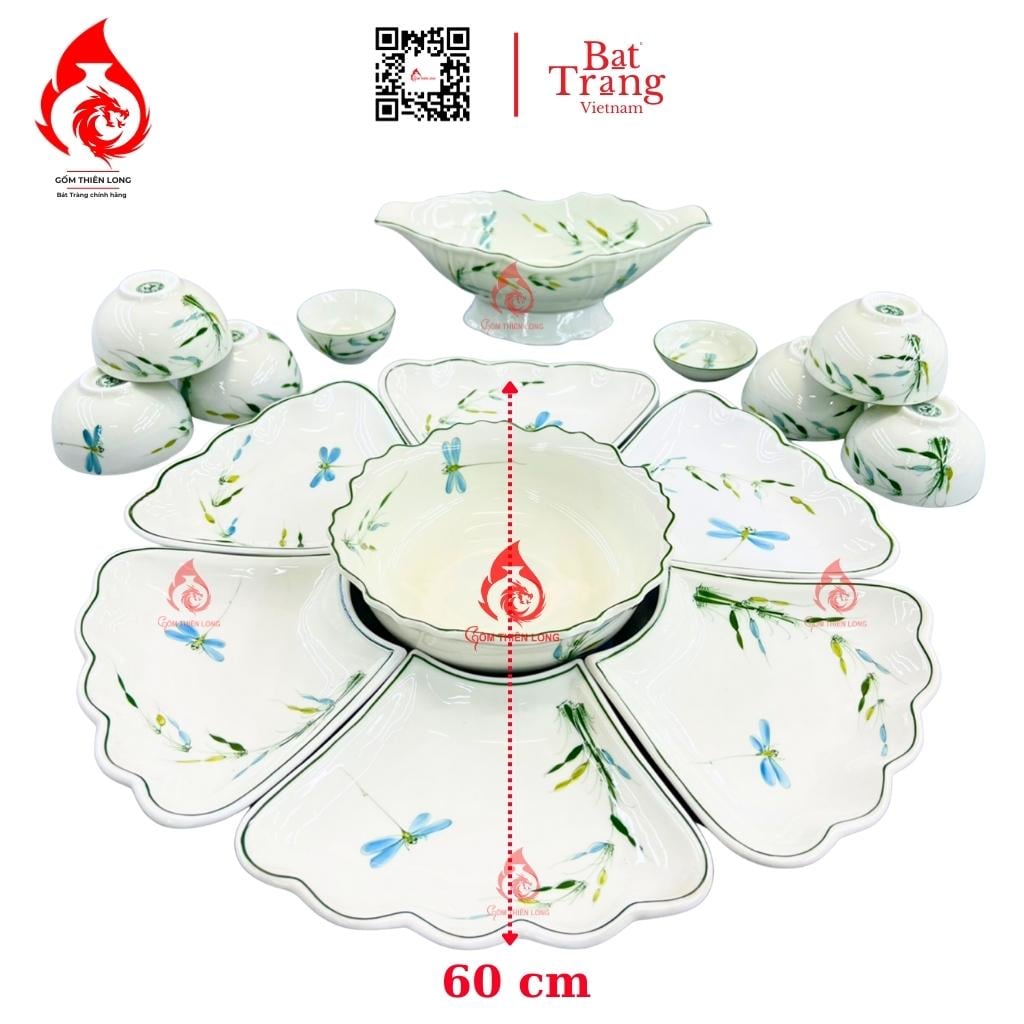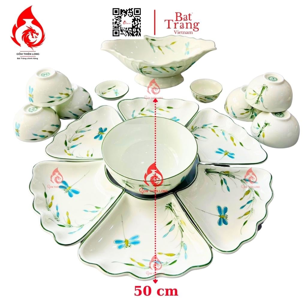 Kích thước: Bộ bát đĩa hoa mặt trời Bát Tràng trúc chuồn có 2 kích thước 50cm và 60cm, bạn có thể chọn bộ bát đĩa có kích thước phù hợp với nhu cầu sử dụng của gia đình mình.