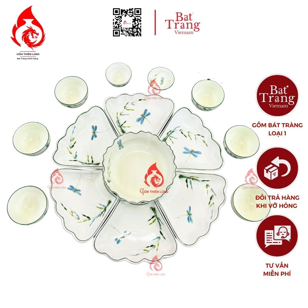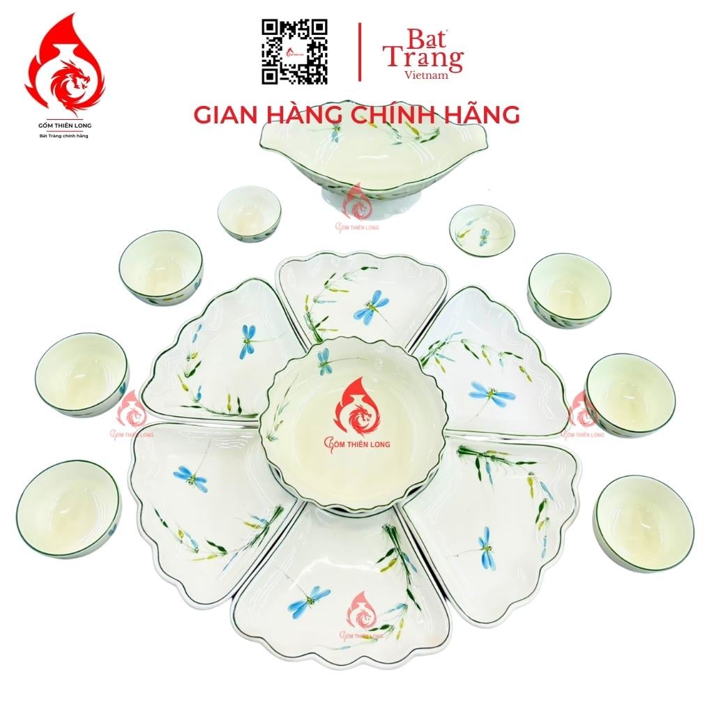 Địa chỉ mua bộ bát đĩa hoa mặt trời Bát Tràng trúc chuồn uy tín: