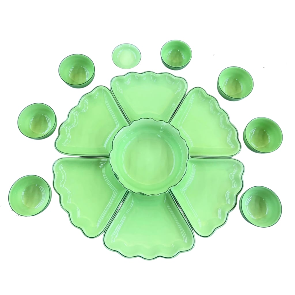 Nhiều gia đình sử dụng để sắp mâm cơm thờ cúng tổ tiên vào ngày lễ đặc biệt tăng thêm phần sang trọng và chỉn chu của gia chủ. Đặc biệt không giống như những loại bát đĩa hoa mặt trời khác, bộ sản phẩm này còn có màu cốm xanh ngọc vô cùng thanh tao. Chỉ với những chi tiết này chắc hẳn ai cũng phải xuýt xoa trước vẻ đẹp này.