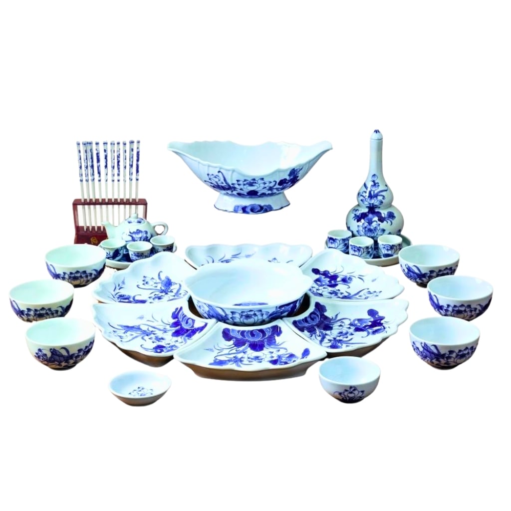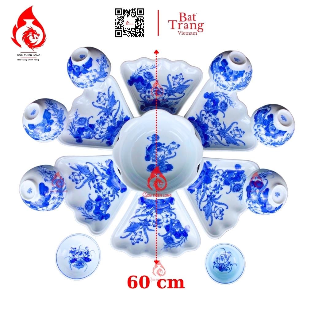 Thông tin sản phẩm Bộ Bát Đĩa Hoa Mặt Trời Lam Ngọc Vẽ Sen