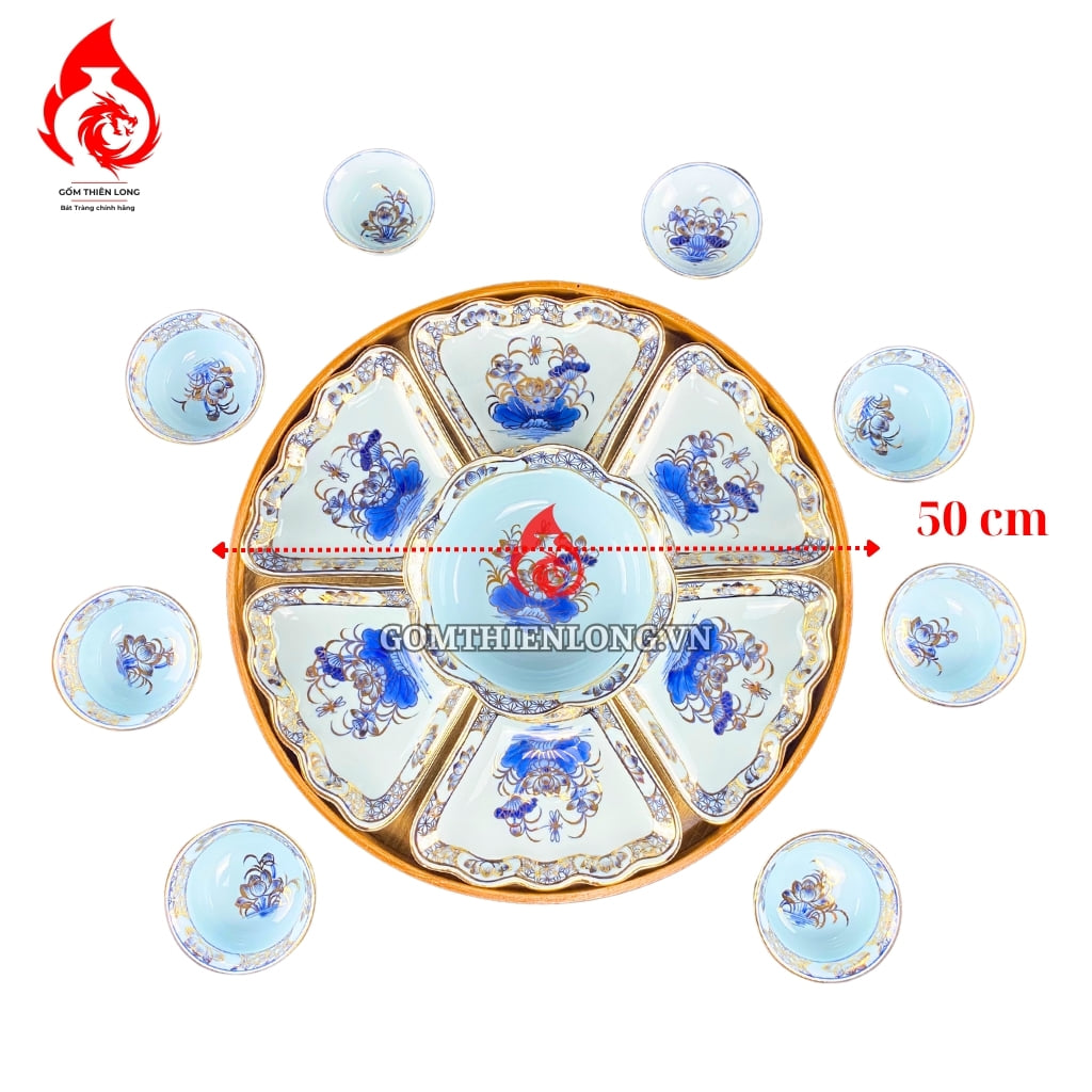 Địa chỉ mua bộ bát đĩa hoa mặt trời Bát Tràng men lam ngọc ve vàng uy tín: