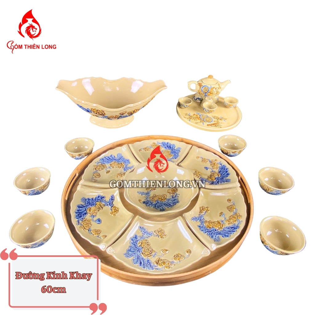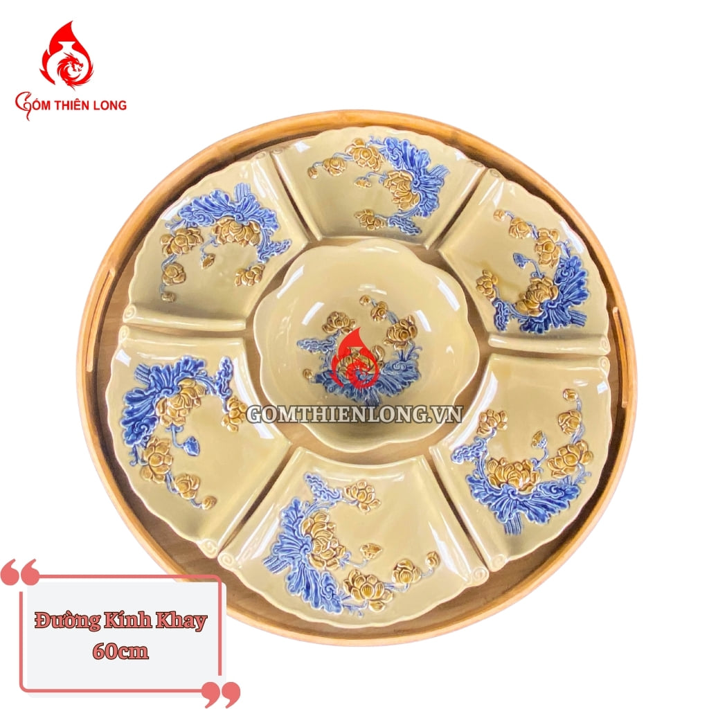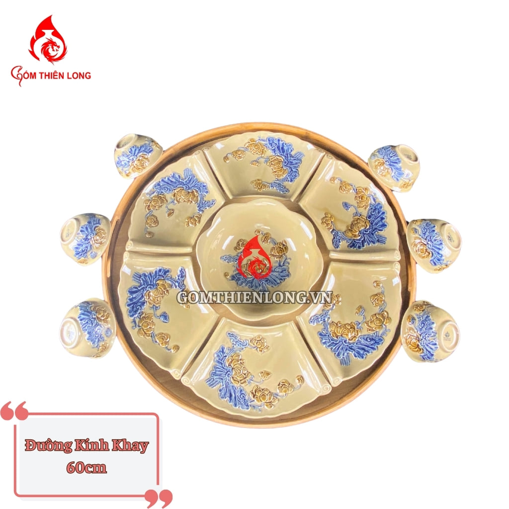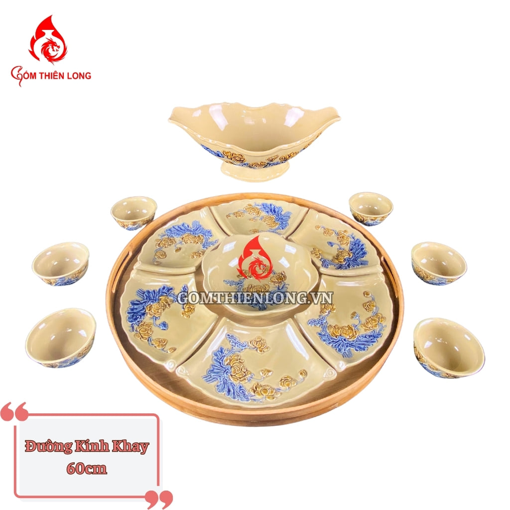 Bộ Cơ Bản: 1 tô hoa + 6 đĩa cánh hoa đk 60cm (7 SP) Bộ Đủ: 1 bát tô - 6 đĩa cánh hoa - 6 bát cơm (13 SP ) Bộ Đầy Đủ: Bộ Đủ + các phụ kiện như bát gà hoặc bộ trà, bộ nậm, bộ đũa... ( LƯU Ý: Sản phẩm chưa bao gồm khay gỗ )