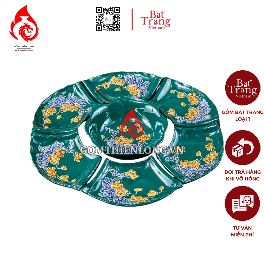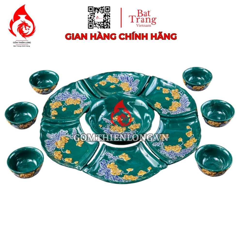 Thông tin các bộ bát đĩa hoa mặt trời men xanh lục bảo đắp nổi hoa sen