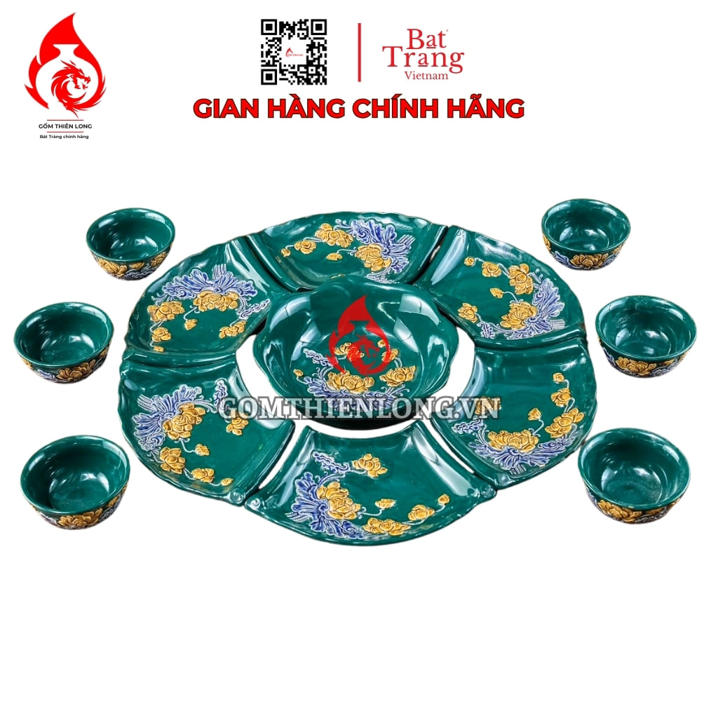 Địa chỉ mua bộ bát đĩa hoa mặt trời Bát Tràng men xanh lục bảo đắp nổi hoa sen uy tín: