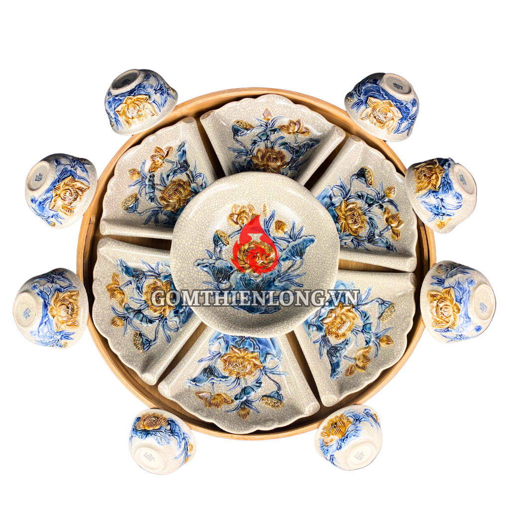 Bộ bát đĩa hoa mặt trời men rạn cổ đắp nổi là một trong những mẫu gốm Bát Tràng kinh điển hiện nay của Thiên Long. Bộ sản phẩm sở hữu phong cách thiết kế cổ điển, mang nhiều màu sắc, họa tiết gắn liền với đời sống văn hóa tâm linh của người Việt Nam. Nếu bạn đang cần báo giá mua số lượng lớn hãy nhấn hotline của chúng tôi để được hỗ trợ nhanh nhất. Còn bạn lần đầu tiên biết tới sản phẩm và muốn tìm hiểu về ngọn nguồn sản phẩm đồ thờ cúng - tâm linh này, hãy cùng chúng tôi dành 60 giây cho nội dung dưới đây.