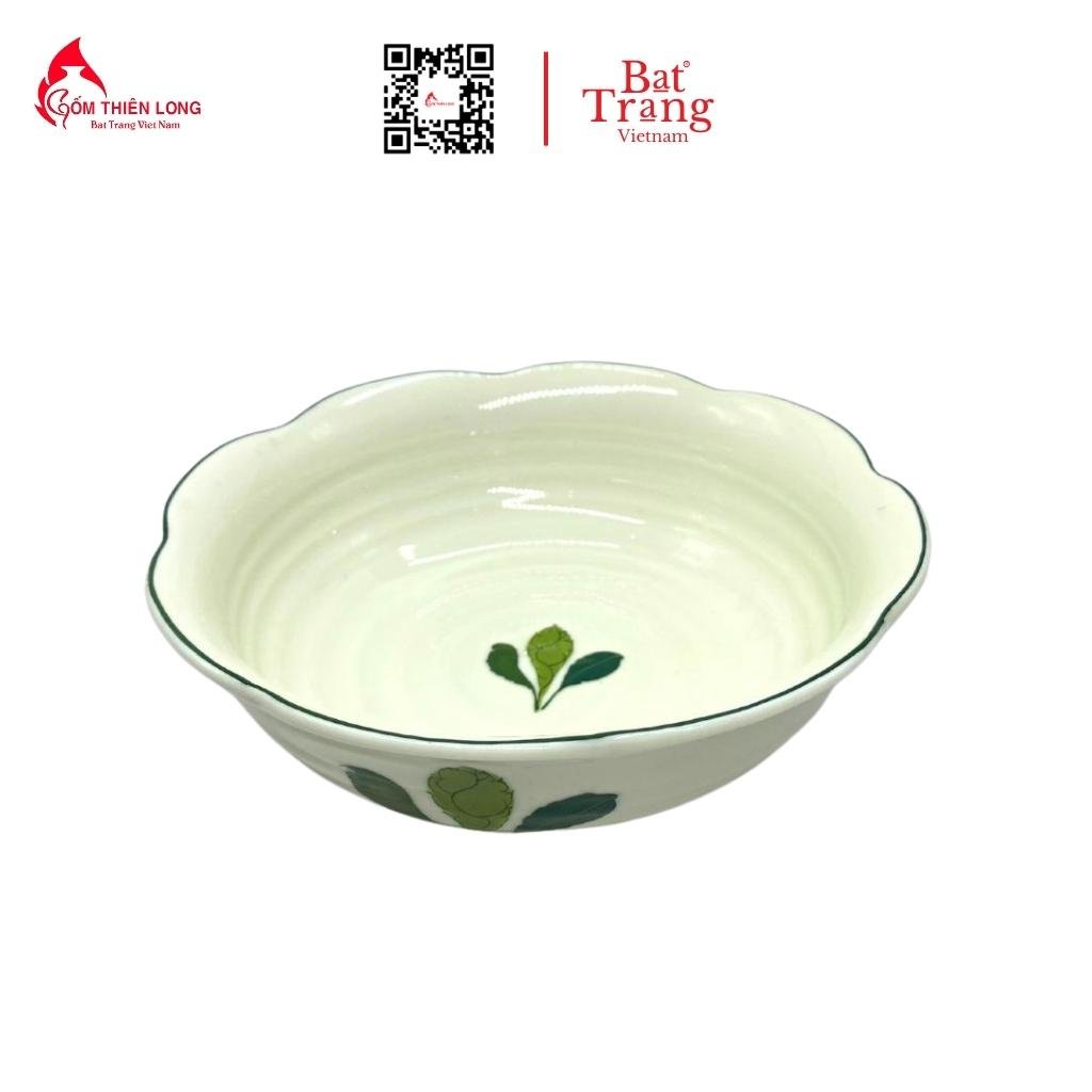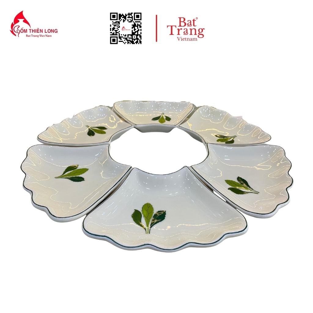 Bộ bát đĩa có màu kem vẽ hoa văn màu xanh lá. Vì vậy mà rất hợp với người mệnh Kim và mệnh Mộc. Những màu sắc này mang đến sự tươi mới lạc quan và niềm tin vào cuộc sống. Trong phong thủy những màu sắc này mang lại rất nhiều may mắn đến cho gia chủ.