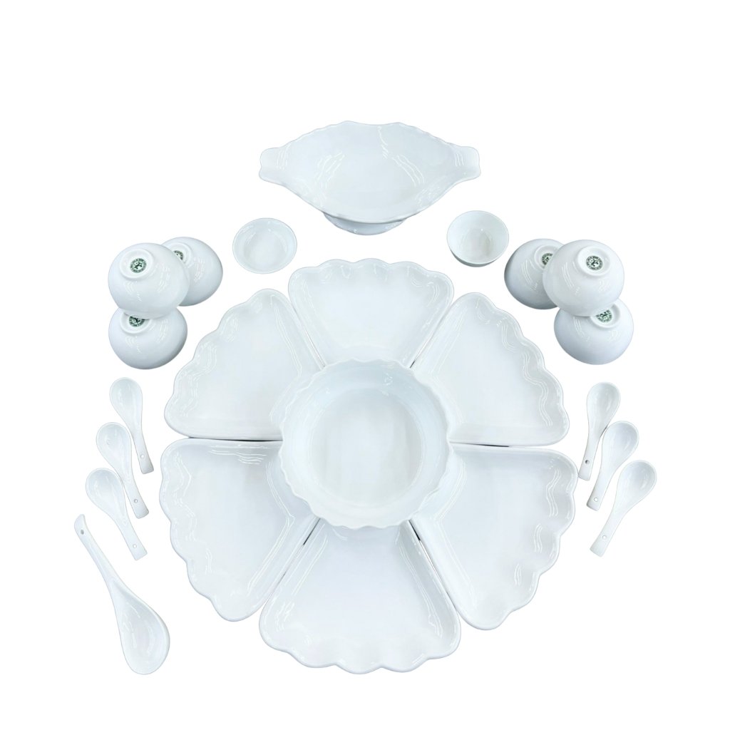 Khác với các bộ bát đĩa thắp hương gốm sứ thông thường, bộ bát đĩa màu trắng đem đến sự trang nhã cùng vẻ đẹp sang trọng, thích hợp cho nhiều không gian.