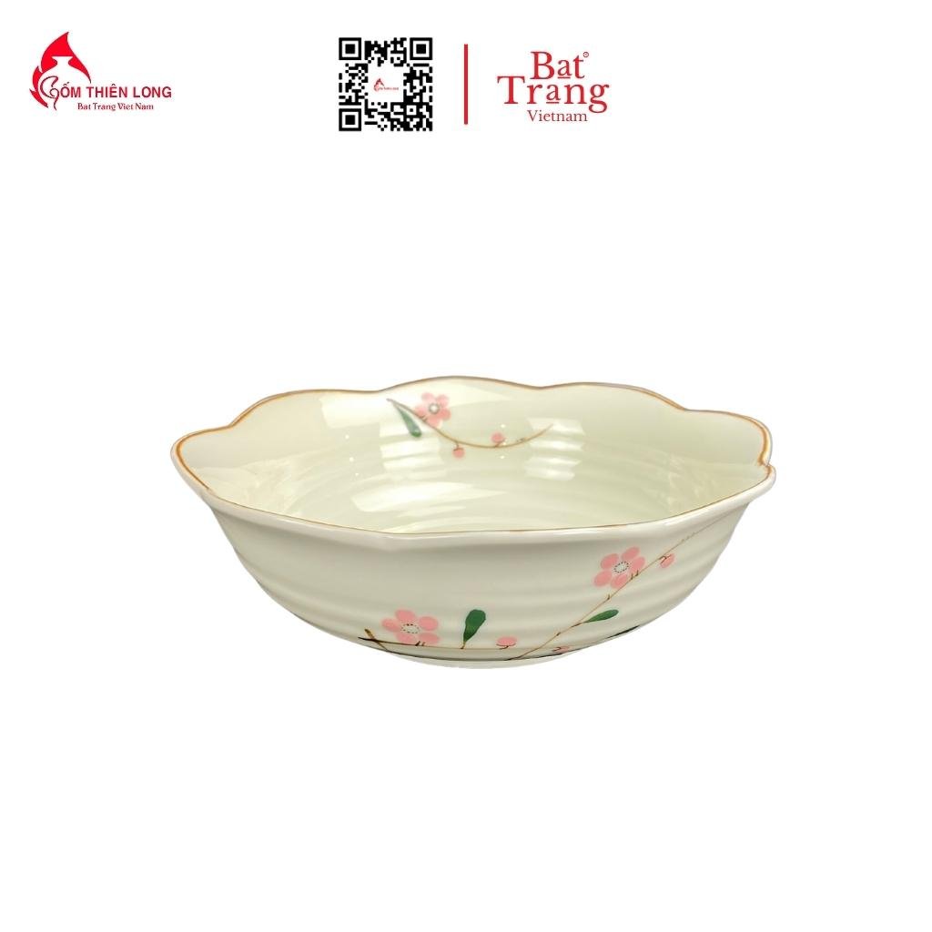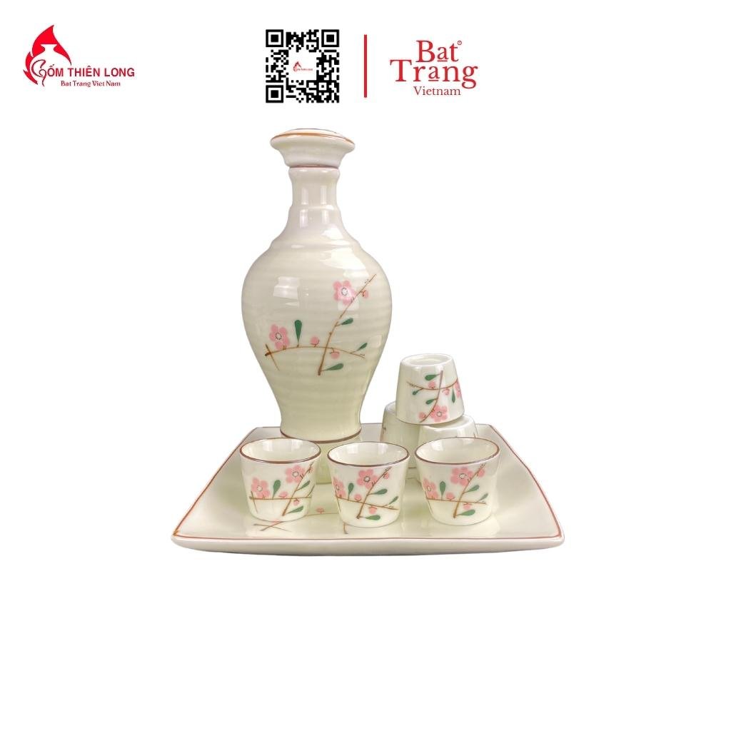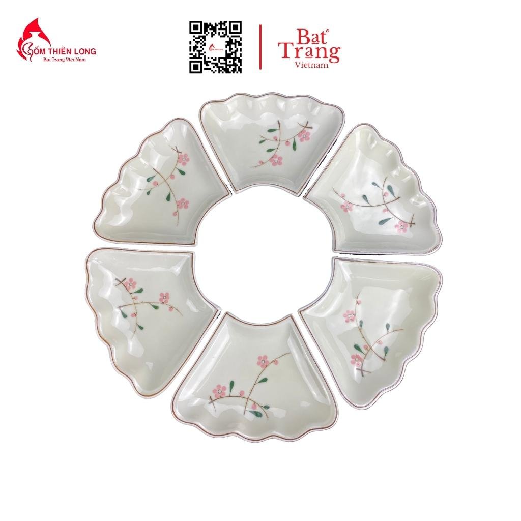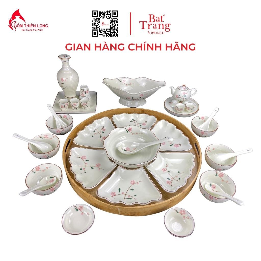 Gốm Thiên Long địa chỉ cung cấp bộ bát đĩa thắp hương men kem vẽ đào hồng cao cấp