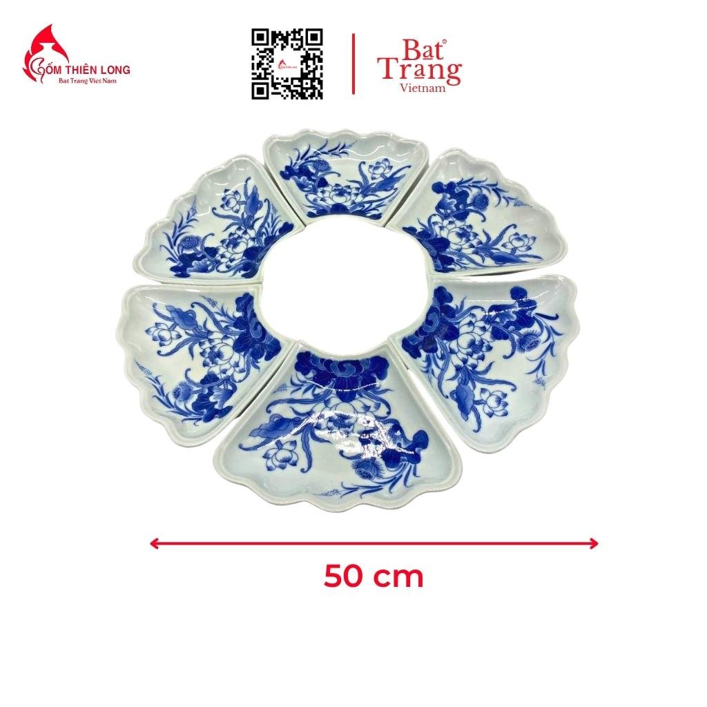 Bộ sản phẩm bộ bát đĩa thắp hương men lam ngọc vẽ sen gốm Bát Tràng Thiên Long bao gồm đầy đủ những vật phẩm cần thiết để chuẩn bị mâm lễ cúng chu đáo. Bộ bát đĩa thắp hương men lam ngọc vẽ sen gốm Bát Tràng Thiên Long được thiết kế theo hình bông hoa đang nở rộ, ở giữa có tô lớn làm nhuỵ hoa, xung quanh là 6 đĩa hình cánh hoa, mang đến vẻ đẹp hài hoà, bắt mắt.