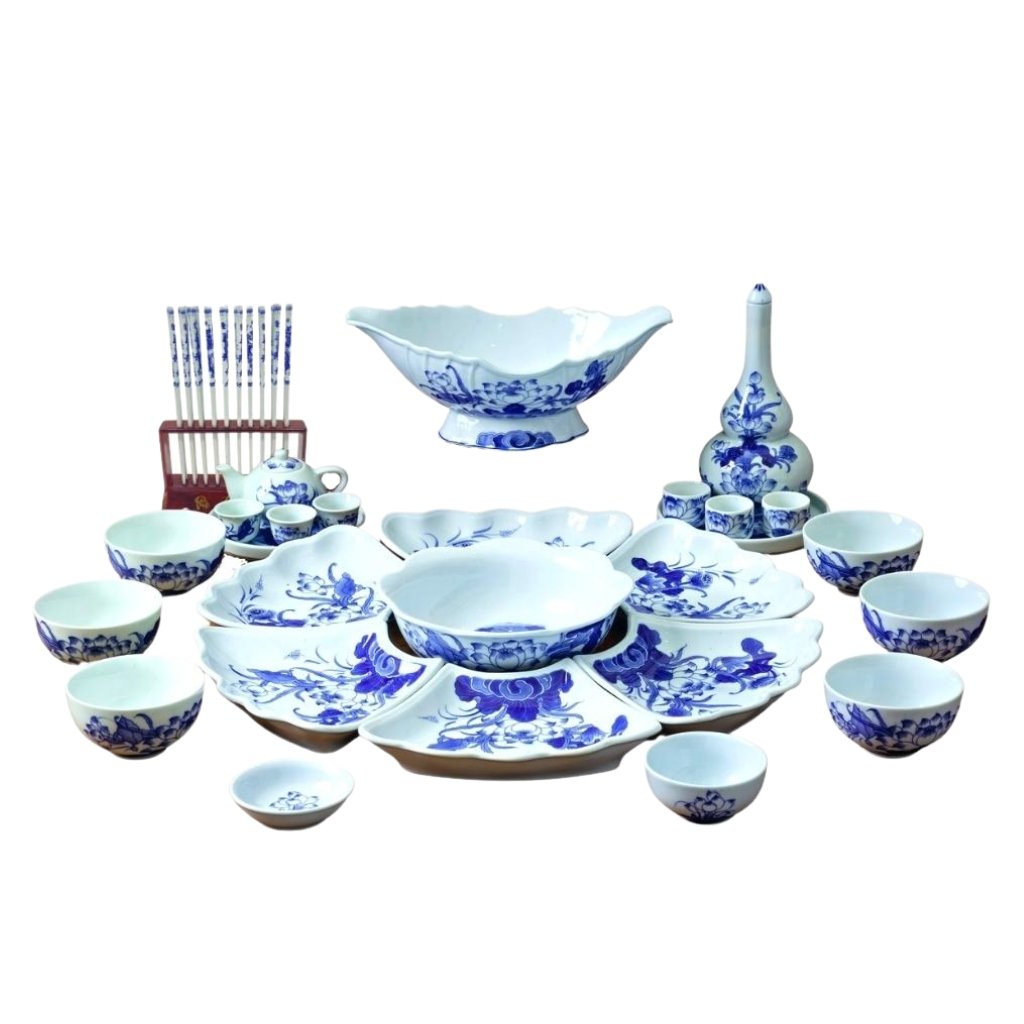 Địa chỉ cung cấp bộ bát đĩa thắp hương men lam ngọc vẽ sen chất lượng