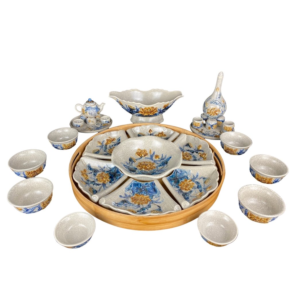 Bộ bát đĩa thắp hương men rạn cho không gian thờ cúng thêm sang trọng
