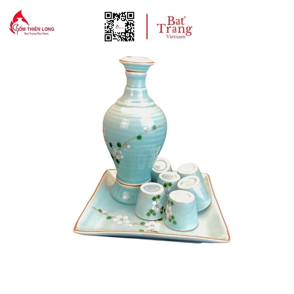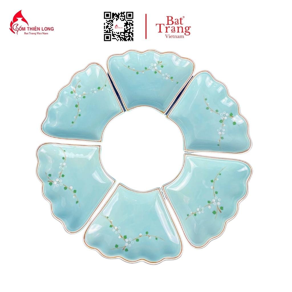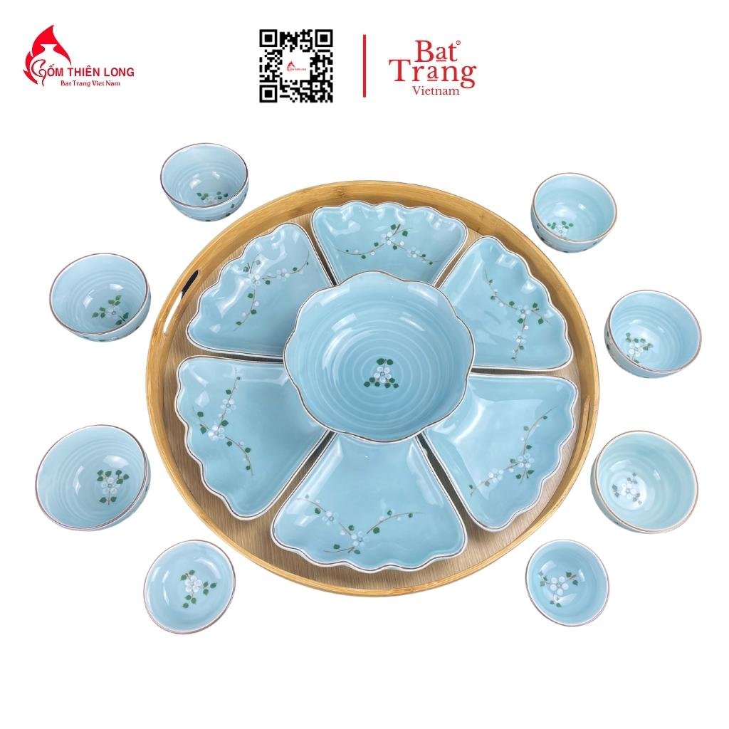 Bộ Bát Đĩa Thắp Hương Xanh Ngọc Vẽ Đào Trắng gốm Bát Tràng cao cấp giá tại xưởng