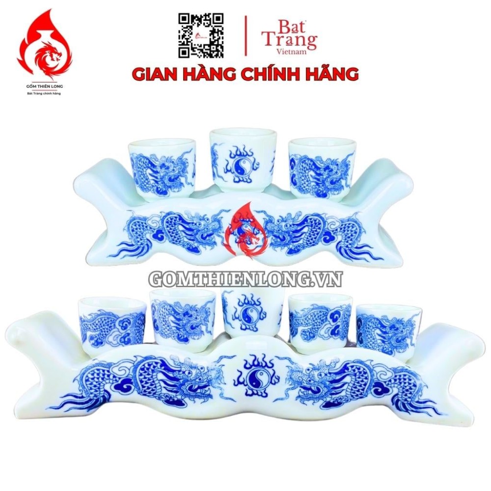 Bộ kỷ chén thờ men lam vẽ long chầu nguyệt Bát Tràng là một sản phẩm đồ thờ cúng cao cấp, được sản xuất thủ công từ làng nghề gốm sứ Bát Tràng nổi tiếng. Bộ sản phẩm gồm 3 - 5 chén thờ đặt trên một đế kỷ được trang trí hình long chầu nguyệt, mang vẻ đẹp trang trọng, tinh tế và ý nghĩa tâm linh sâu sắc.