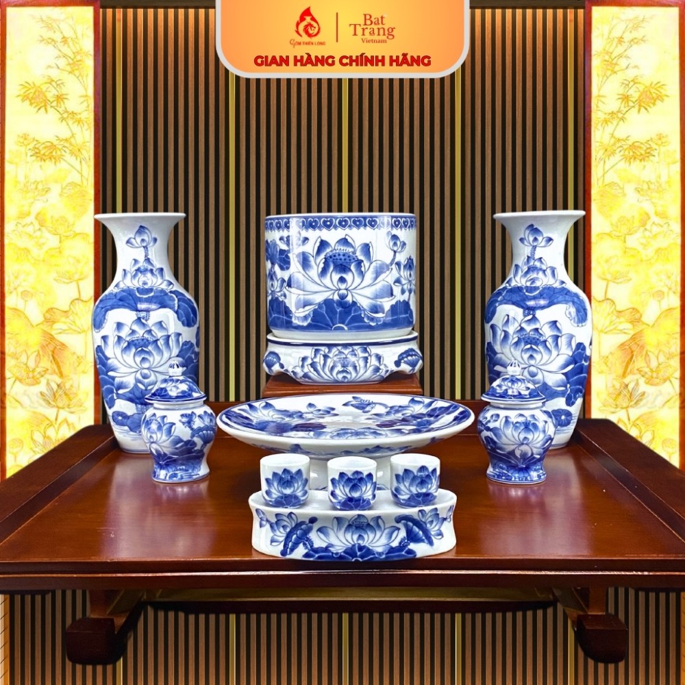 Đắm Mình Trong Tinh Hoa Nghệ Thuật Cổ Truyền Với Bộ Đồ Thờ Bát Tràng Men Lam Huế Vẽ Tay Hoa Sen Tinh Xảo