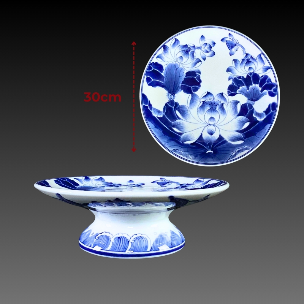 Bộ Đồ Thờ Bát Tràng Men Lam Huế Vẽ Sen 240801