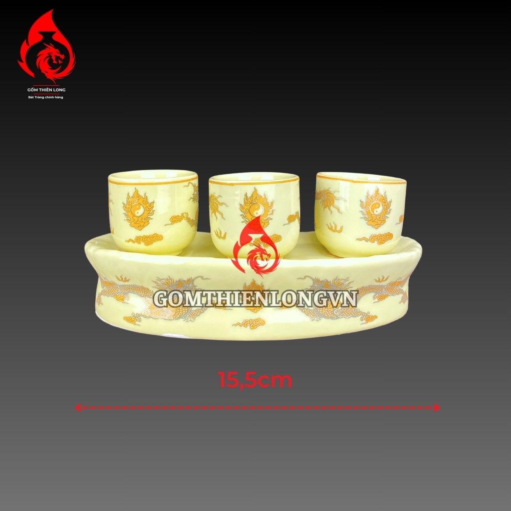 Bộ Đồ Thờ Bát Tràng Men Vàng Kem Vẽ Ánh Kim 241104