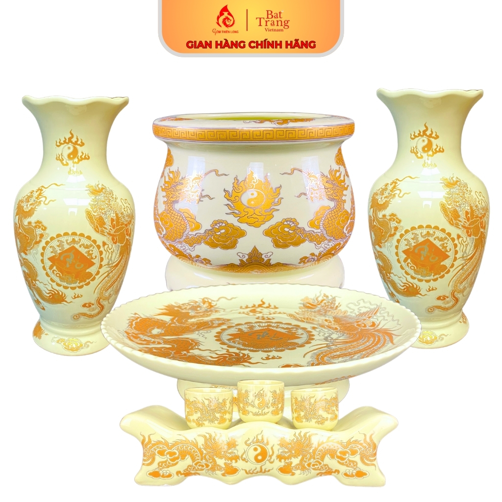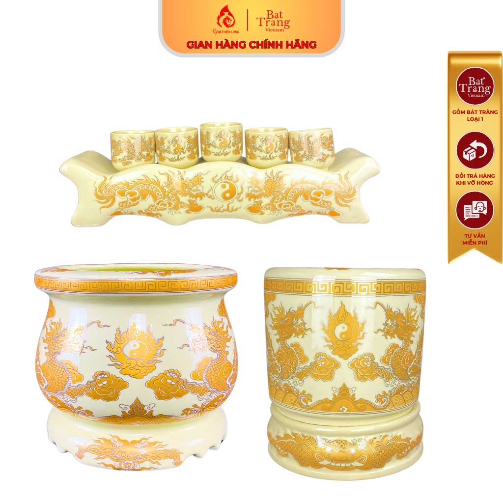 Thông tin sản phẩm Bộ Đồ Thờ Bát Tràng Men Vàng Kem Vẽ Ánh Kim 241104