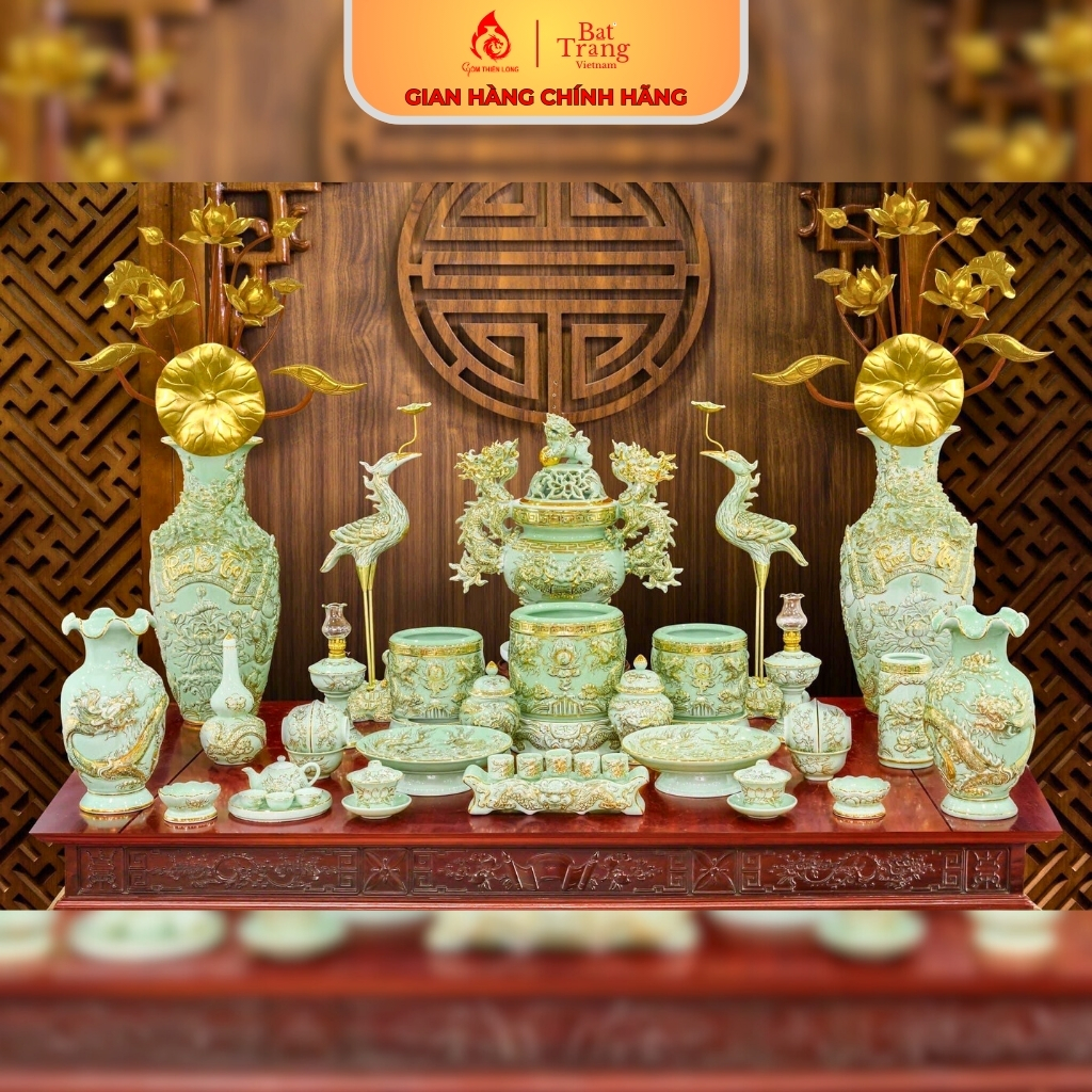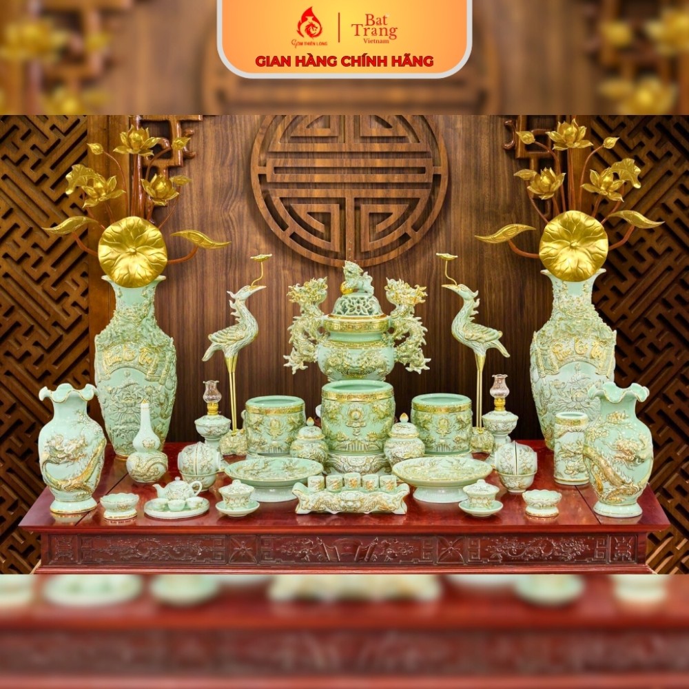 Bộ Đồ Thờ Bát Tràng Men Xanh Ngọc Bích Vẽ Vàng 24k - Sự lựa chọn hoàn hảo cho không gian thờ cúng