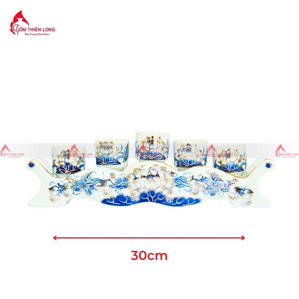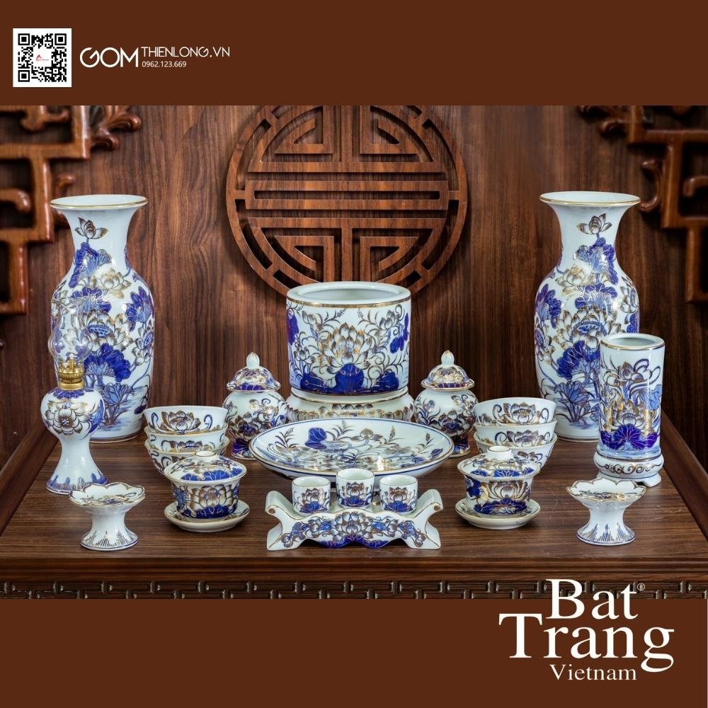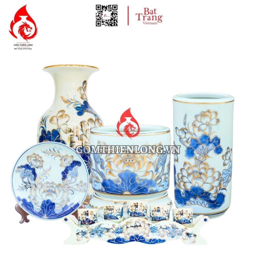Bộ đồ thờ hoa sen vẽ vàng 24K men lam - trọn lòng thành cùng gia tiên