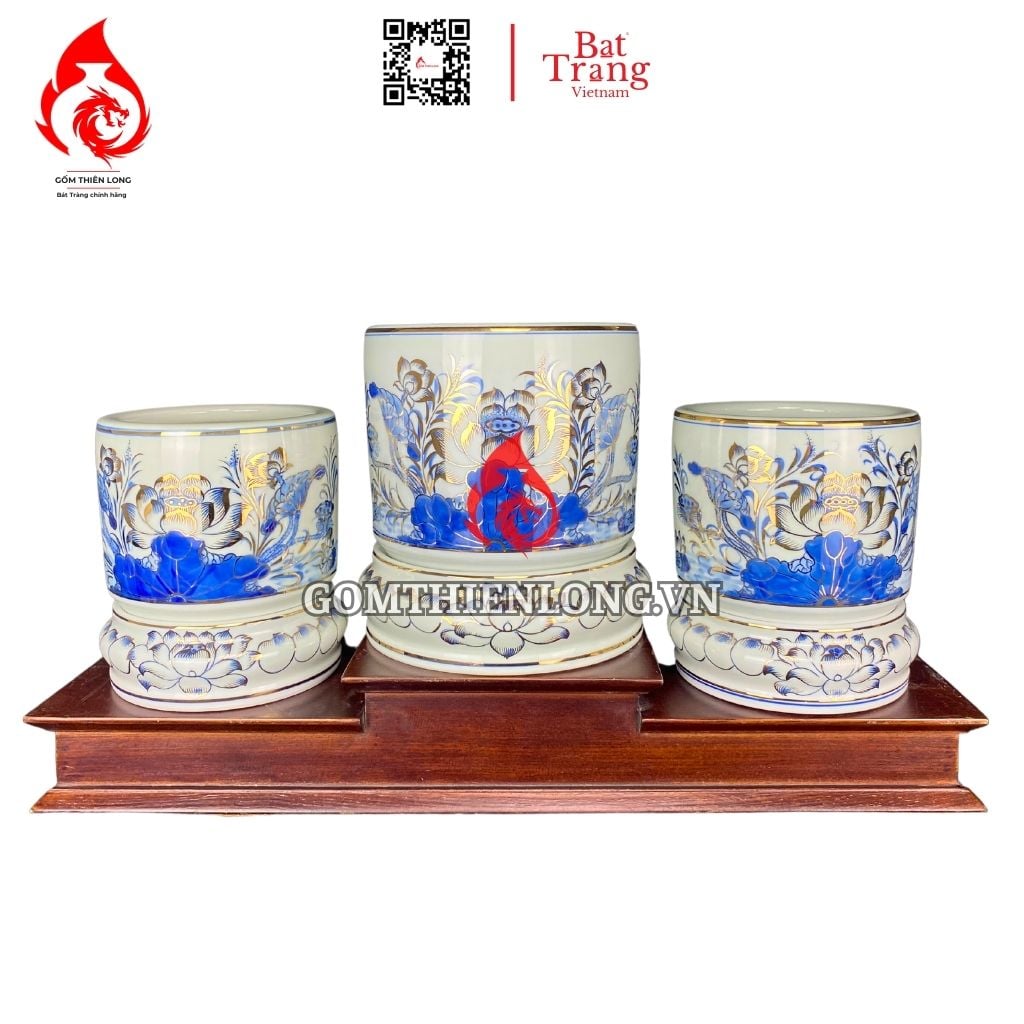 Nếu bạn đang cần tìm mua bộ đồ thờ hoa sen vẽ vàng 24K men lam gốm Bát Tràng chất lượng, đừng quên liên hệ đến gốm Thiên Long chúng tôi để được sở hữu sản phẩm ưng ý.