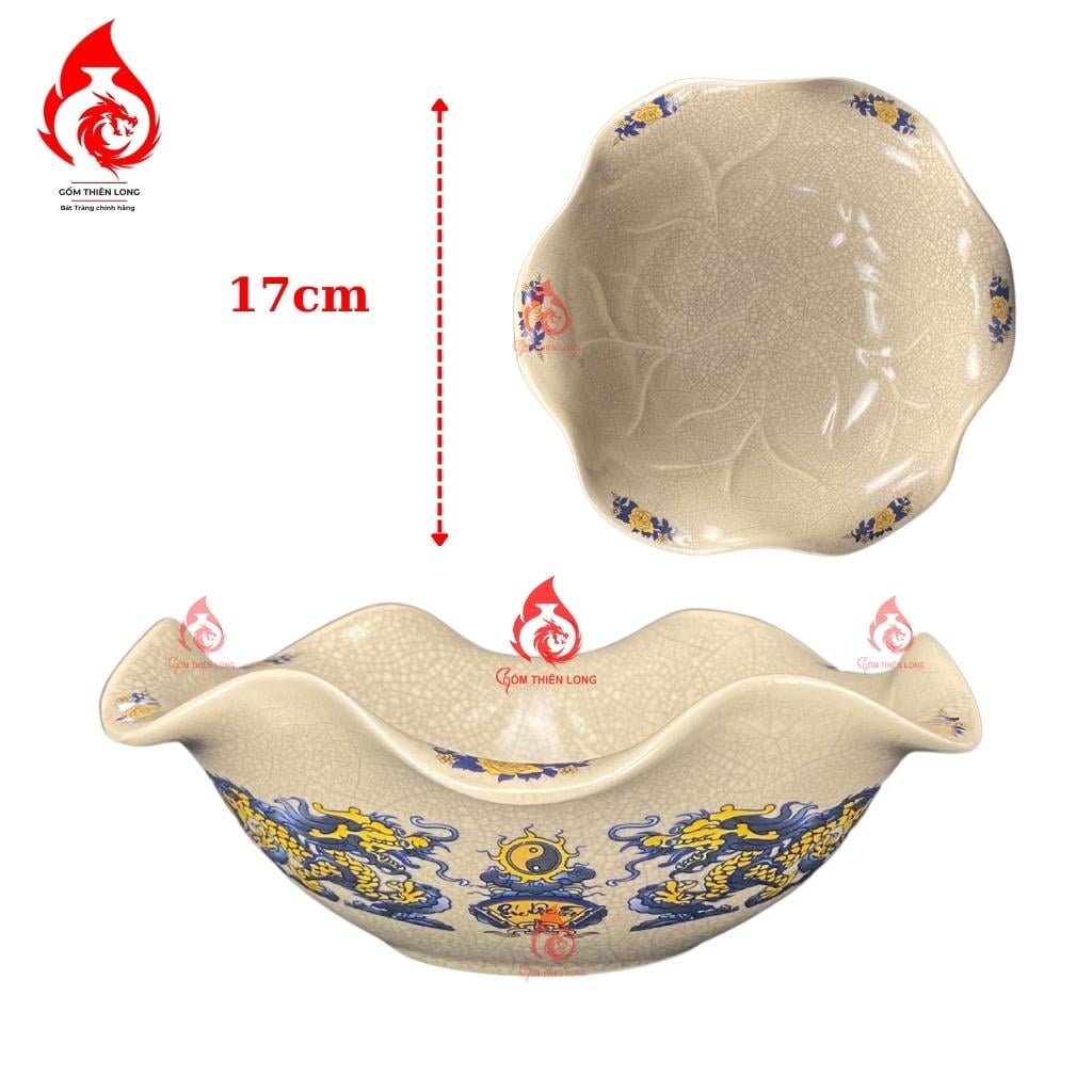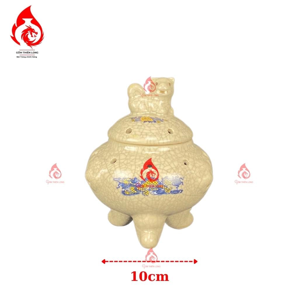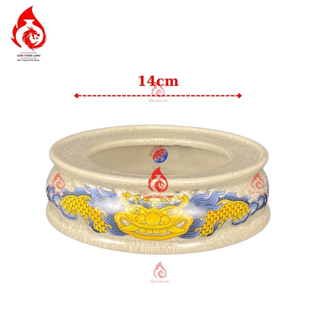 Bát hương: là vật phẩm quan trọng nhất trên bàn thờ, dùng để cắm hương, nhang. Bát hương Bát Tràng men rạn in long chầu nguyệt có kích thước, kiểu dáng khác nhau, phù hợp với các kích thước ban thờ.