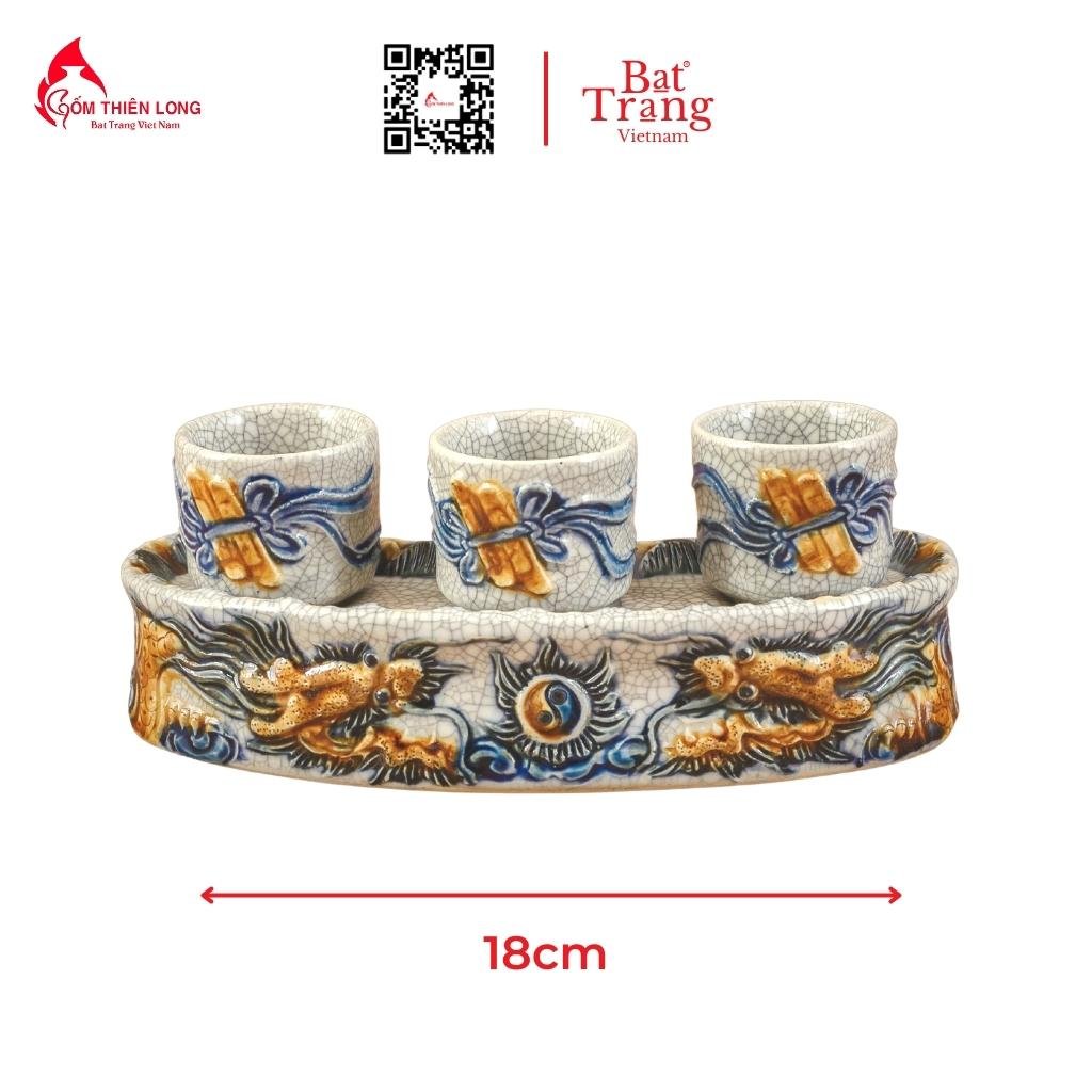 Bộ đồ thờ men rạn đắp nổi là một trong những mẫu bộ đồ thờ gia tiên thiết kế độc quyền chỉ có duy nhất ở làng nghề Bát Tràng. Sản phẩm sử hữu thiết kế ấn tượng với men rạn cổ mang màu sắc trang nhã cùng họa tiết đắp nổi sống động, tôn nên vẻ đẹp cao quý cho không gian thờ cúng.
