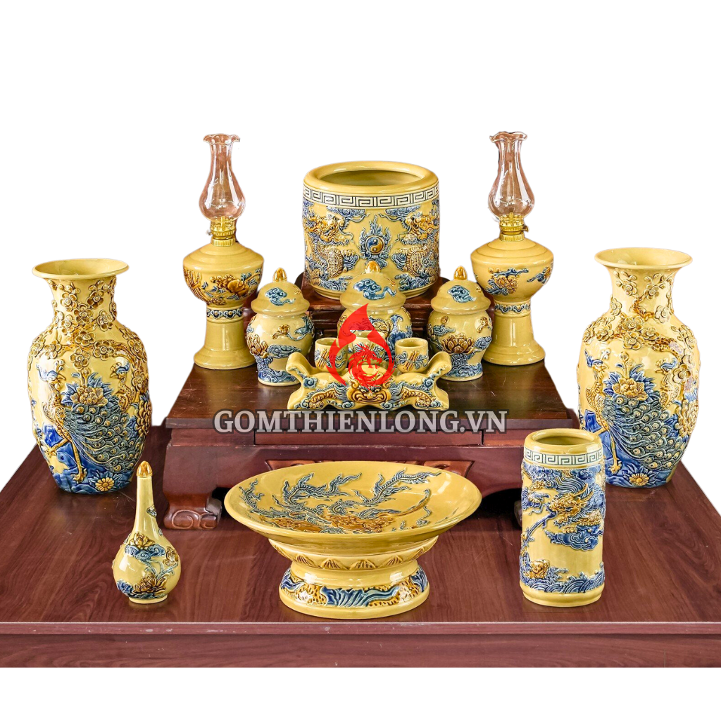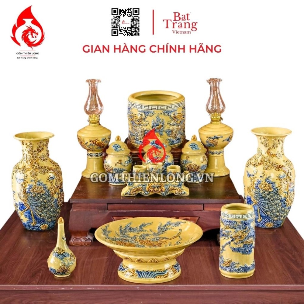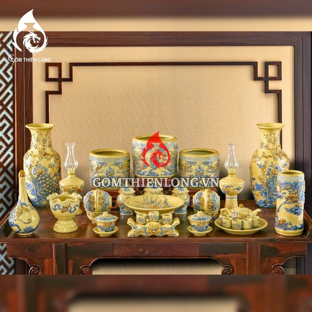 Thông tin sản phẩm Bộ Đồ Thờ Bát Tràng Màu Vàng Hoàng Tộc Đắp Nổi 231023