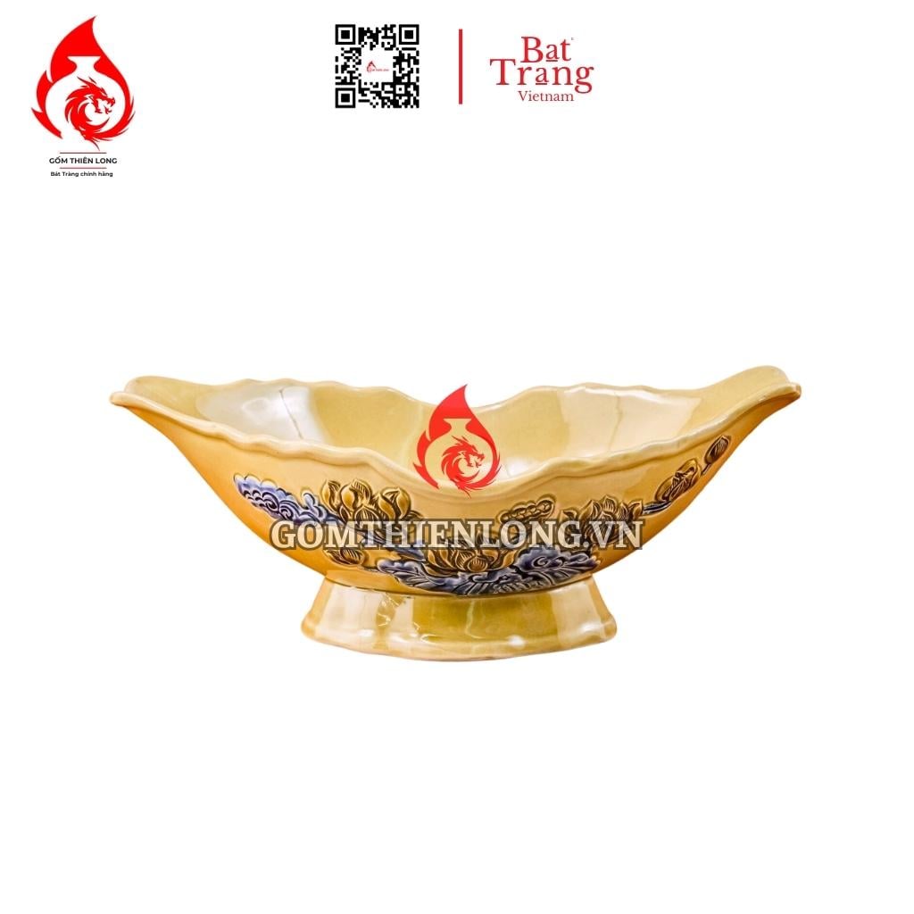 Bộ đồ thờ men hoàng tộc Bát Tràng là một trong những sản phẩm gốm sứ được ưa chuộng nhất hiện nay. Với họa tiết đắp nổi tinh xảo, sang trọng, bộ đồ thờ men hoàng tộc Bát Tràng không chỉ mang ý nghĩa tâm linh sâu sắc mà còn là một món đồ trang trí cao cấp cho không gian thờ cúng. Bộ đồ thờ Bát Tràng men hoàng tộc được làm từ nguyên liệu cao cấp, trải qua quá trình chế tác thủ công tỉ mỉ, đắp nổi tinh xảo. Màu vàng hoàng tộc không chỉ mang lại vẻ đẹp độc đáo cho sản phẩm mà còn có tác dụng giúp sản phẩm bền đẹp theo thời gian, tăng thêm tính trang nghiêm cho không gian thờ cúng.