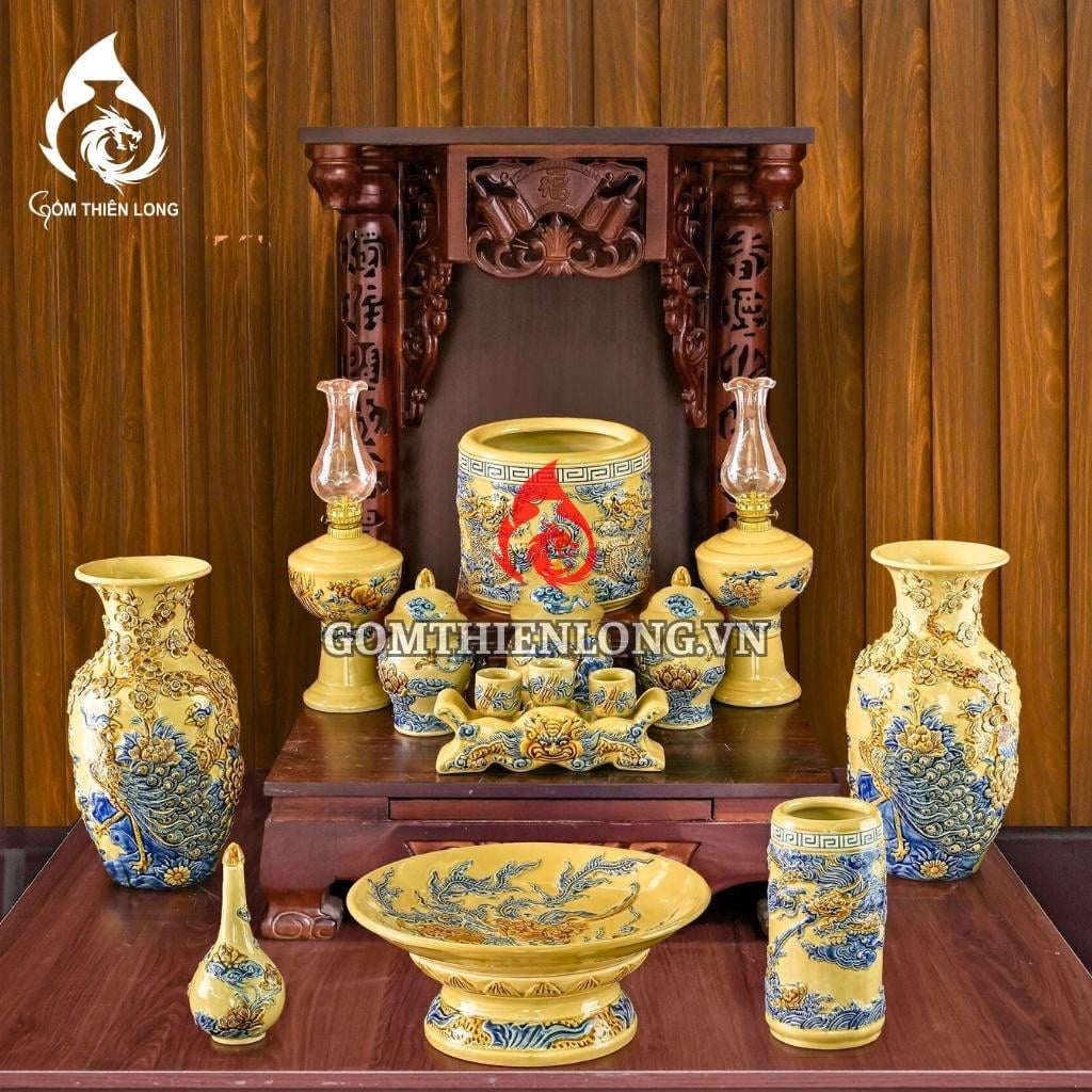 Bộ đồ thờ Bát Tràng men hoàng tộc
