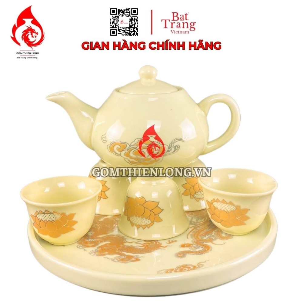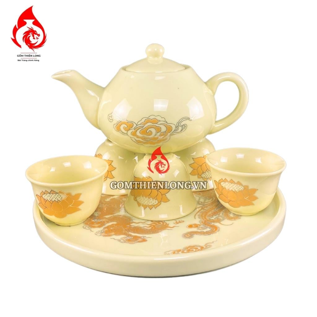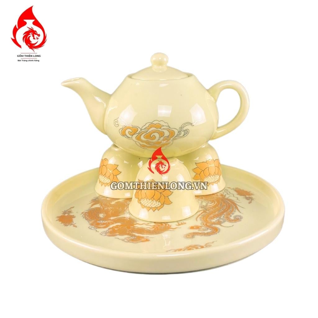 Nếu bạn đang tìm kiếm một bộ ấm chén bàn thờ cao cấp, sang trọng và ý nghĩa thì bộ ấm chén bàn thờ màu vàng vẽ ánh kim hoa sen Bát Tràng là một lựa chọn hoàn hảo.