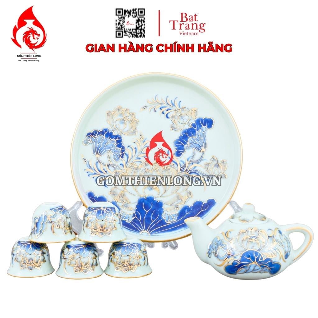 Thông tin sản phẩm Bộ Ấm Chén Bàn Thờ Men Xanh Lam Vẽ Vàng Hoa Sen 231128