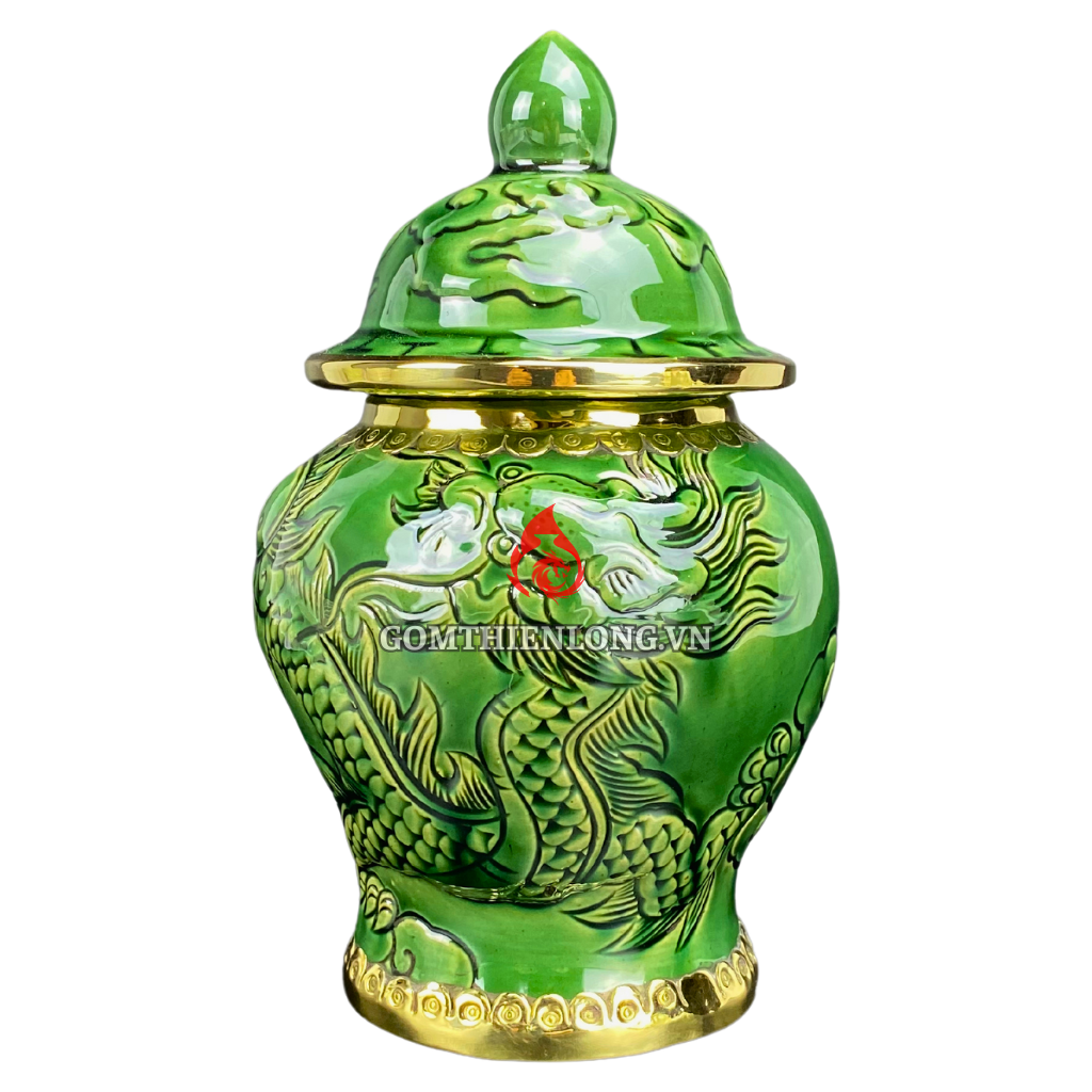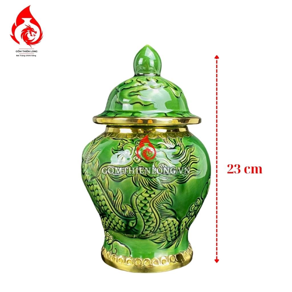Chóe Thờ Bát Tràng Men Xanh Ngọc Lục Bảo Đắp Nổi Long Chầu Nguyệt 230248