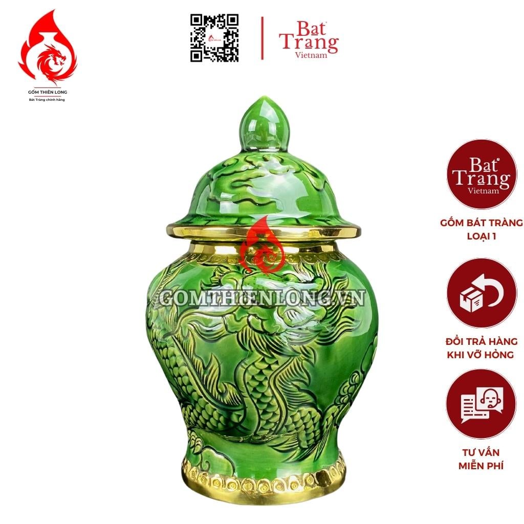 Sản phẩm có nhiều kích thước và mẫu mã đa dạng, phù hợp với nhiều không gian thờ cúng khác nhau. Giá thành của chóe thờ Bát Tràng men xanh ngọc lục bảo long chầu nguyệt khá cao so với các dòng men khác, dao động từ vài trăm nghìn đến vài triệu đồng.