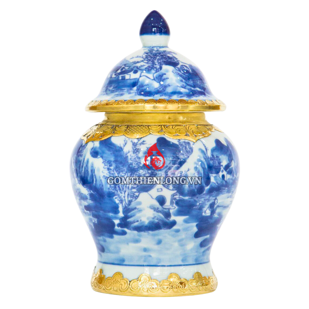 Ngoài ra, chóe thờ Bát Tràng men lam bọc đồng vẽ sơn thủy còn mang ý nghĩa phong thủy tốt đẹp. Theo quan niệm dân gian, sơn thủy là biểu tượng của sự hòa hợp giữa trời và đất, mang đến ý nghĩa bình an, may mắn và tài lộc cho gia chủ.