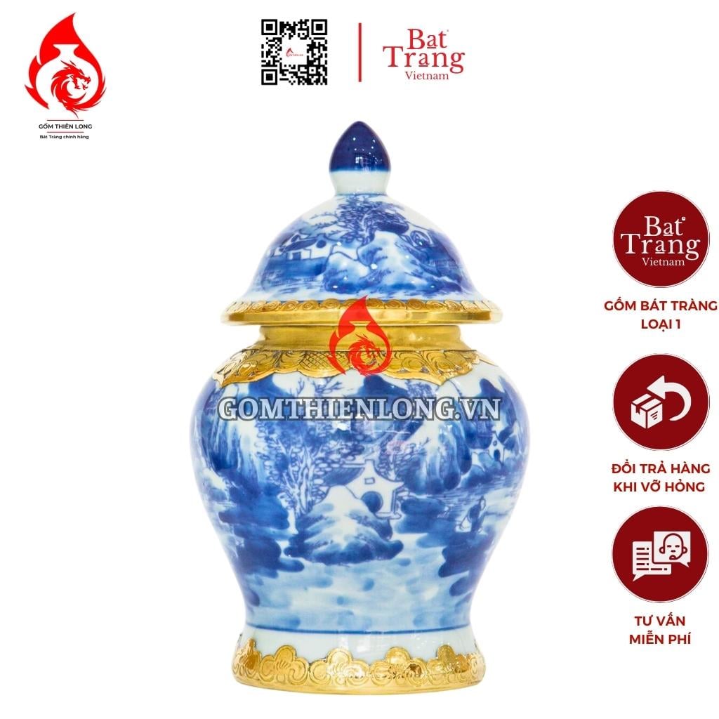 Chóe Thờ Bát Tràng Men Lam Vẽ Vàng Long Vân 230241