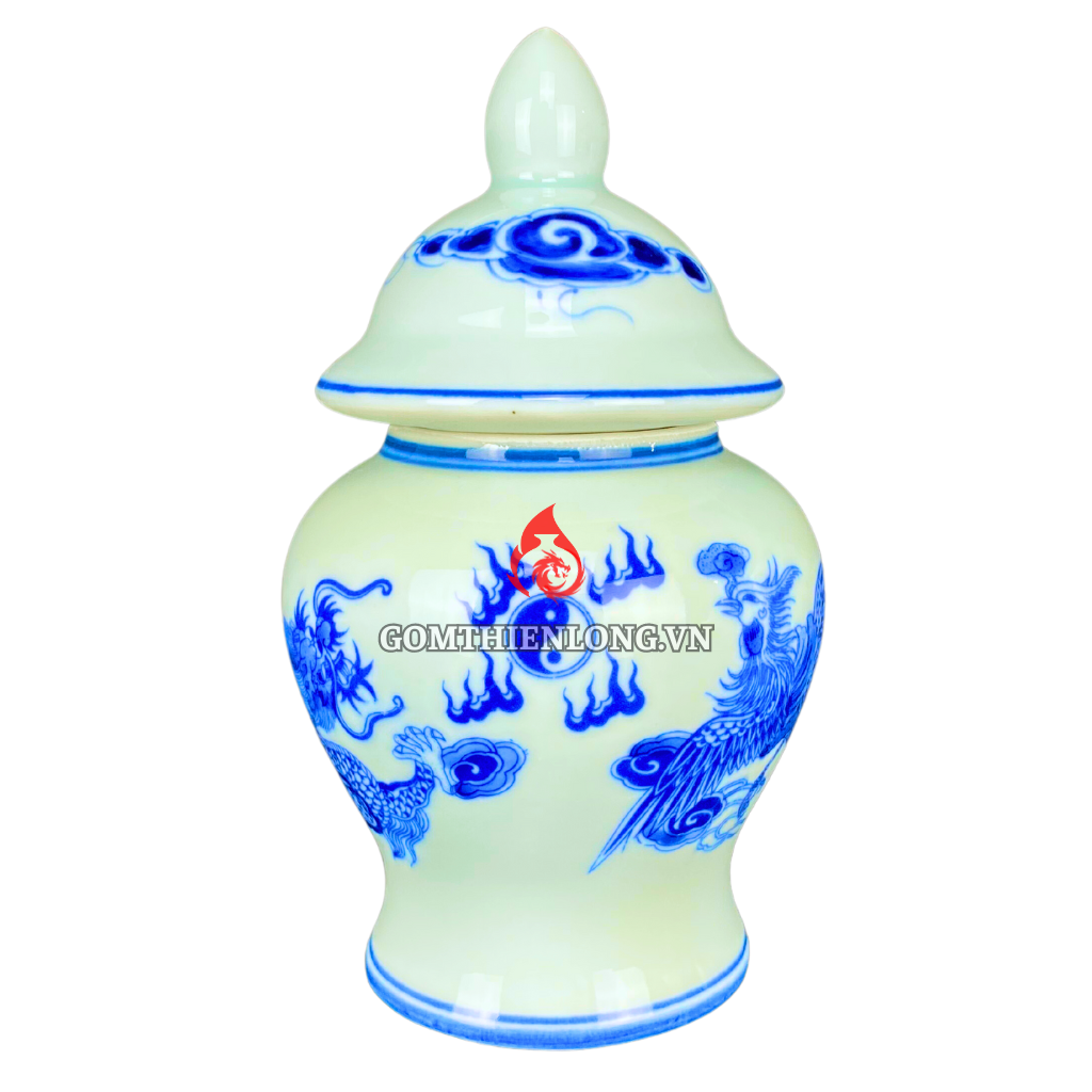 Chóe thờ Bát Tràng men lam vẽ rồng phượng có thiết kế tinh tế, sang trọng với tiết rồng phượng. Đây là một trong những họa tiết phổ biến trong đồ thờ gốm sứ Bát Tràng. Họa tiết rồng phượng mang ý nghĩa phong thủy tốt lành, tượng trưng cho sự quyền uy, trường thọ, thịnh vượng.