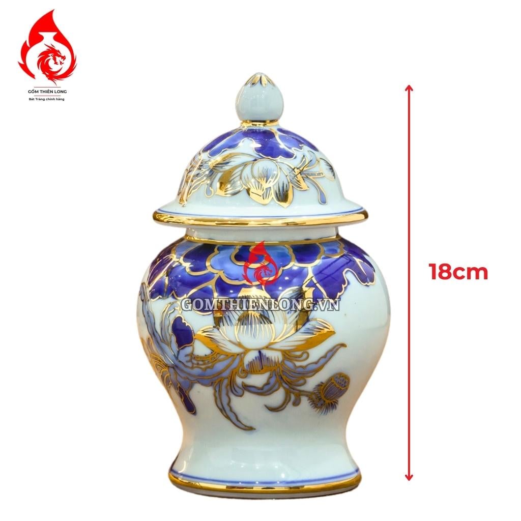 Chóe Thờ Bát Tràng Men Lam Vẽ Vàng Hoa Sen 230240