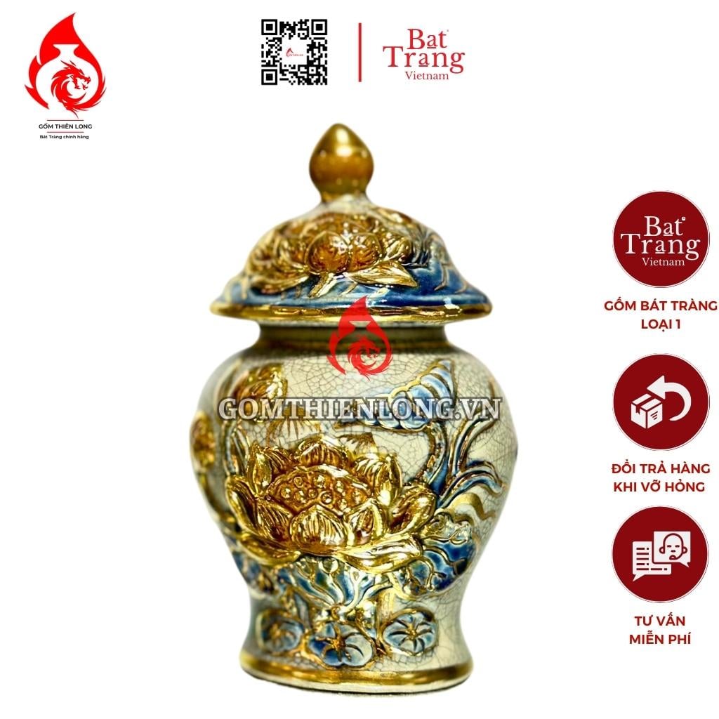Chóe Thờ Bát Tràng Men Rạn Đắp Nổi Vẽ Vàng Hoa Sen 230234