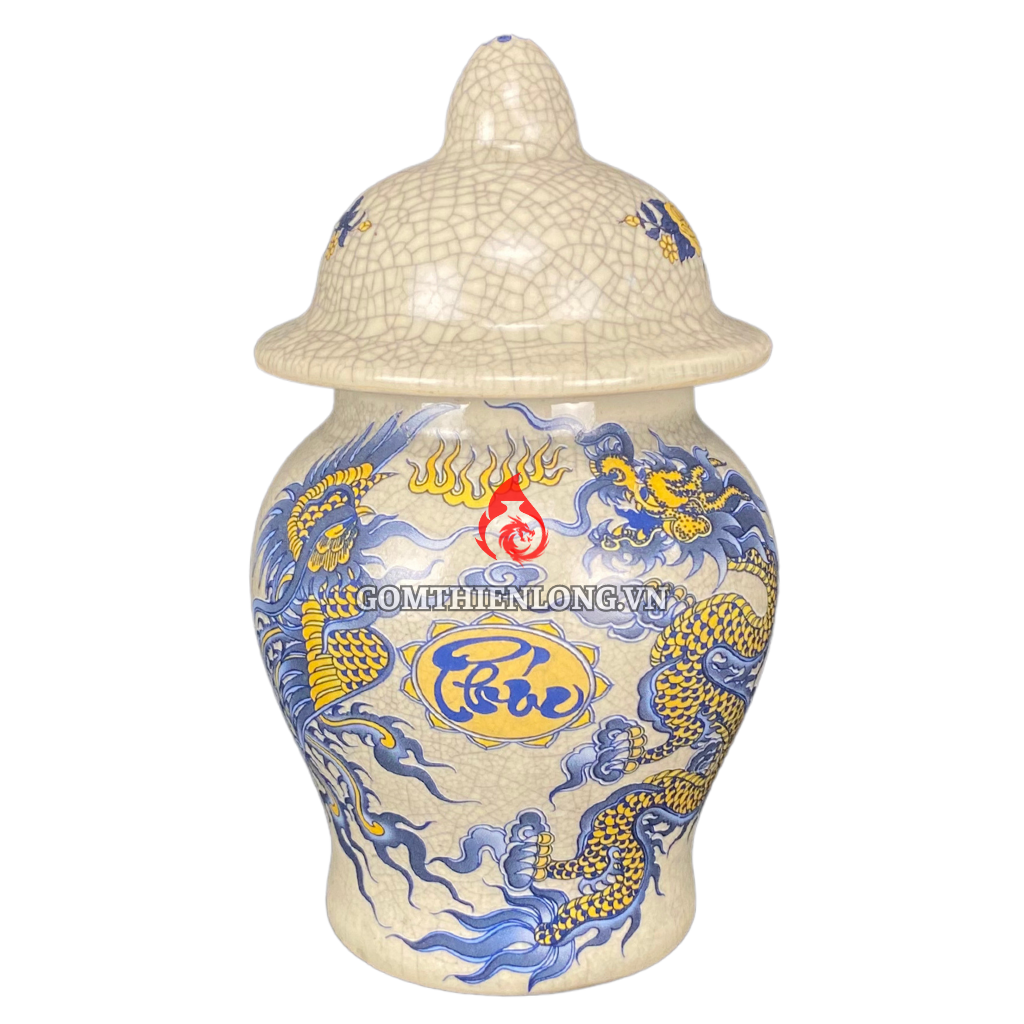 Chóe Thờ Bát Tràng Men Rạn In Rồng Phượng 230246