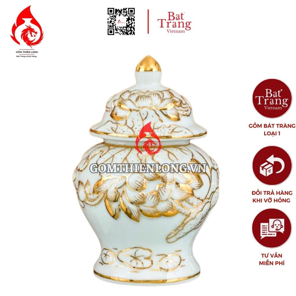 Chóe Thờ Bát Tràng Vẽ Vàng Hoàng Kim Khắc Nổi Hoa Sen 230254