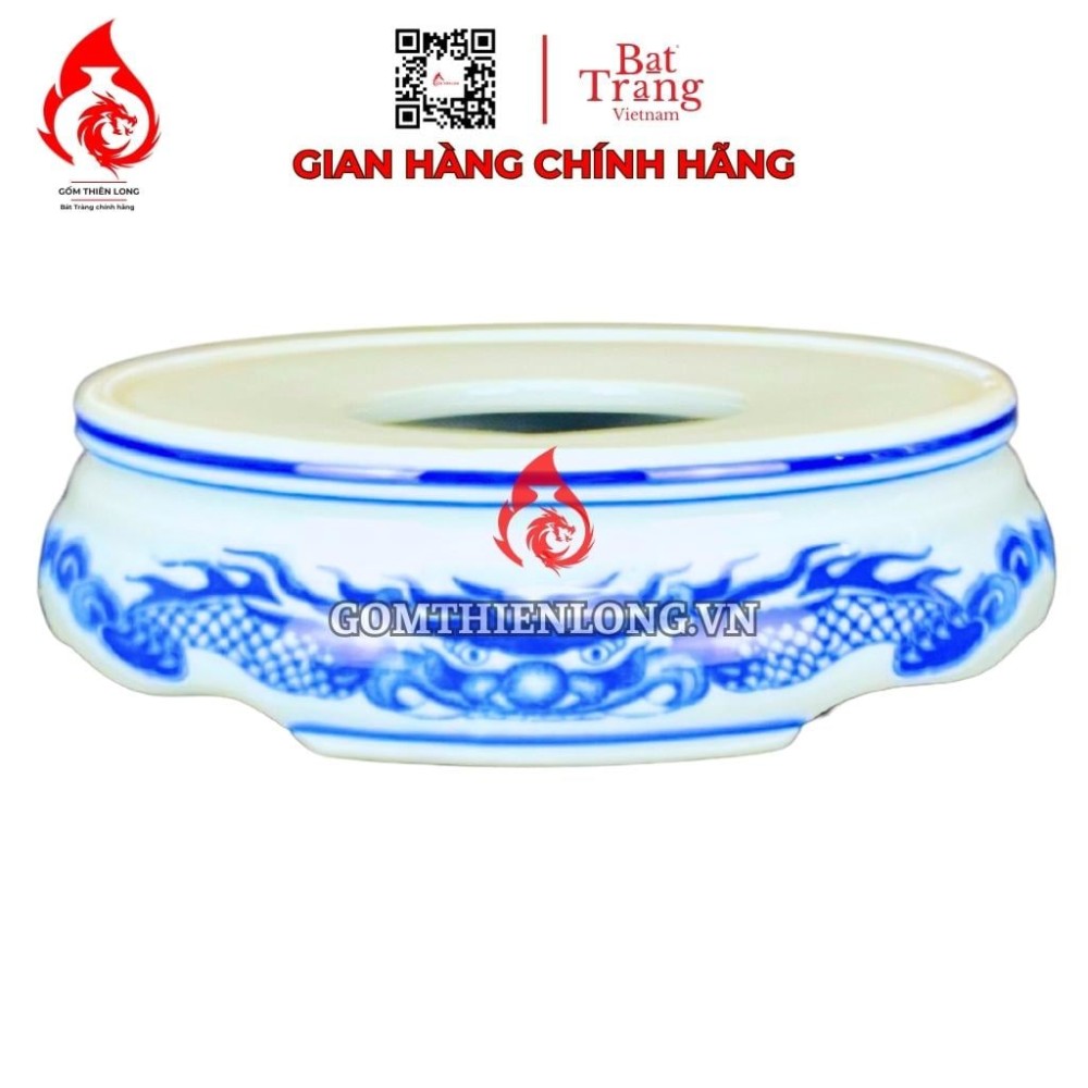 Chân Đế Bát Hương Bằng Sứ Men Lam Vẽ Rồng R230815