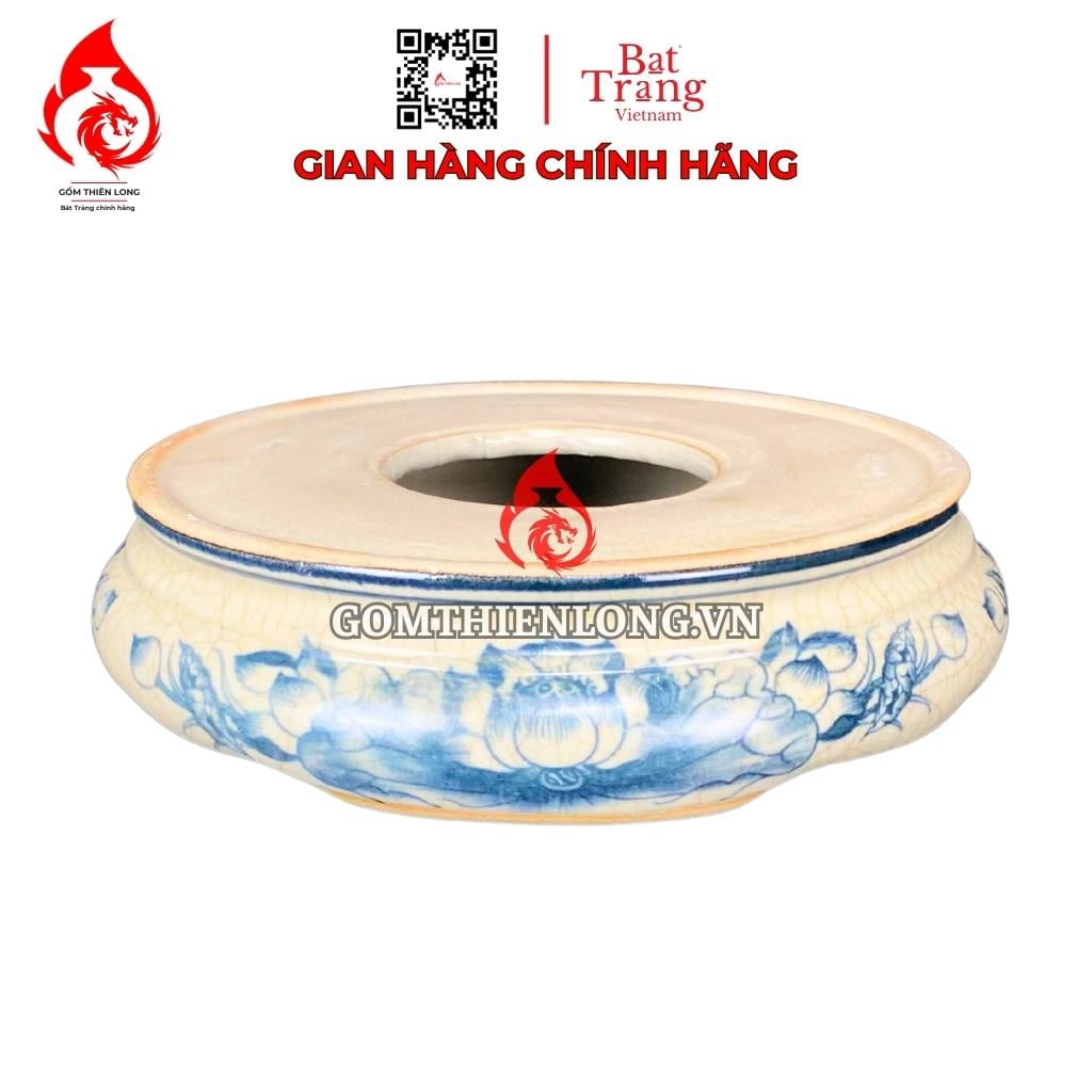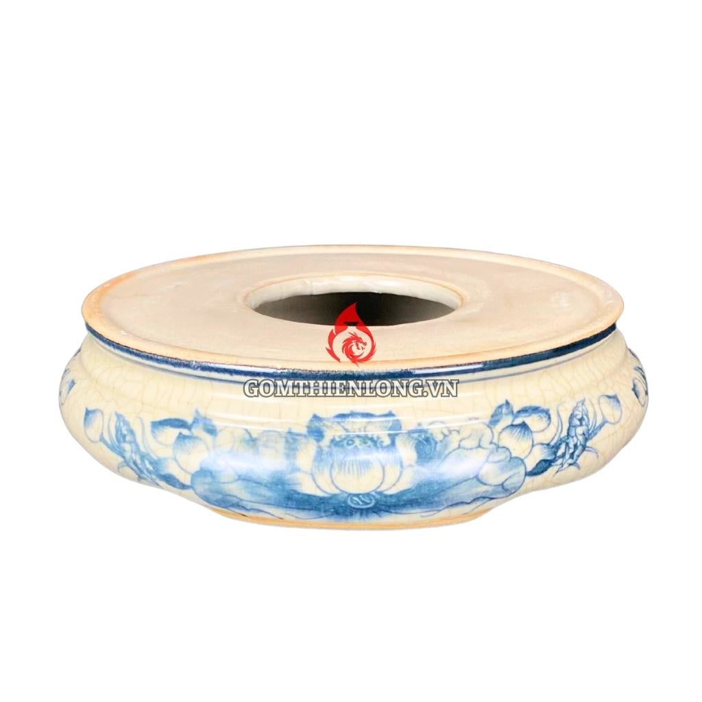 Chân Đế Bát Hương Bằng Sứ Men Rạn Vẽ Sen SD060723