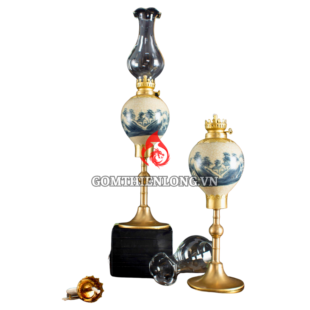 Đèn Dầu Thờ Bát Tràng Dáng Lê Men Rạn Vẽ Đồng Quê 230199