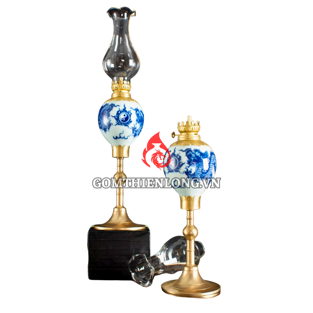 Đèn Dầu Thờ Bát Tràng Dáng Lê Vẽ Long Chầu Nguyệt 230222
