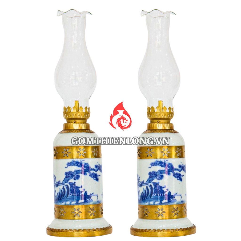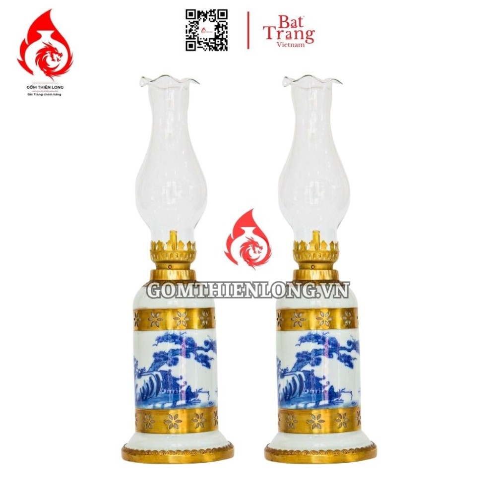 Thông tin sản phẩm Đèn Dầu Thờ Bát Tràng Dáng Ống Men Lam Vẽ Sơn Thủy 230189