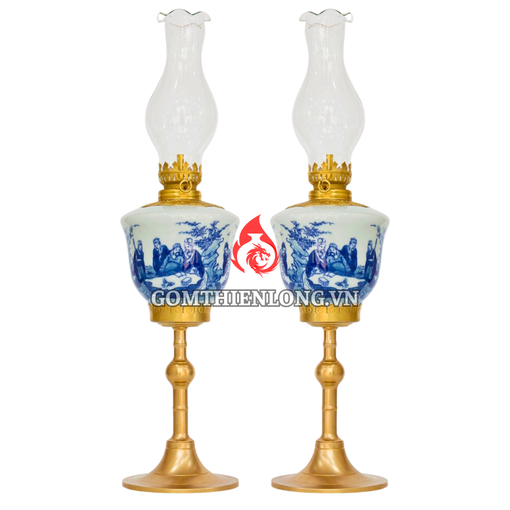 Thông tin sản phẩm Đèn Dầu Thờ Bát Tràng Dáng Tống Men Lam Vẽ Trúc Lâm Thất Hiền 230186