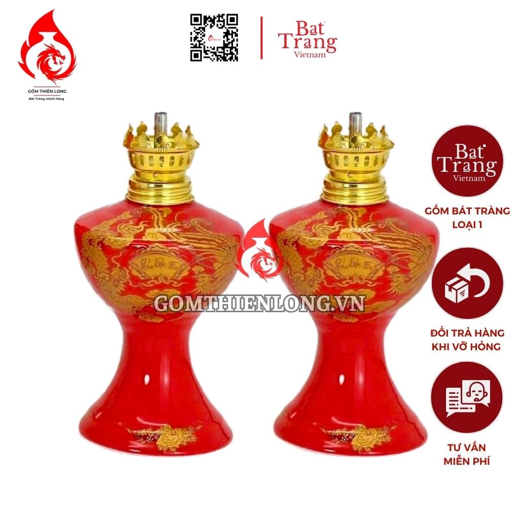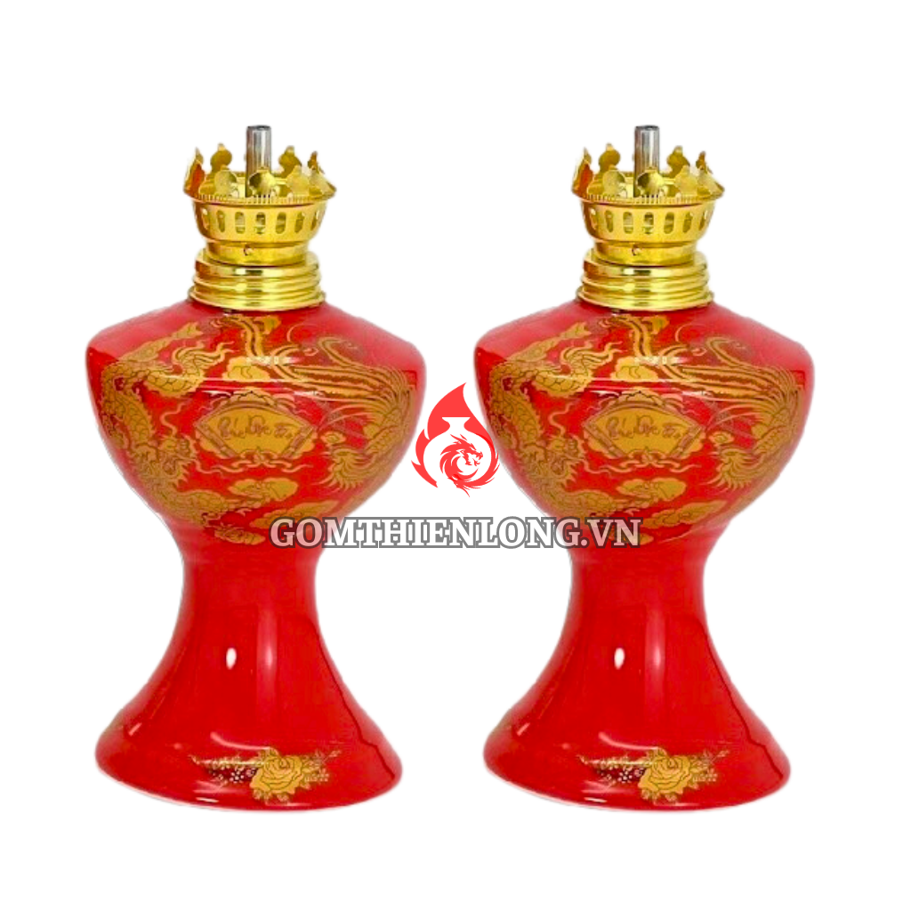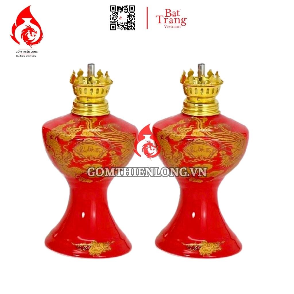 Đèn dầu thờ Bát Tràng men đỏ in rồng phượng là một sản phẩm đồ thờ cúng làm từ chất liệu gốm Bát Tràng cao cấp, được nung ở nhiệt độ cao nên có độ bền cao, không bị nứt vỡ khi sử dụng. Đèn có màu men đỏ truyền thống, sắc cổ kính, trang nhã, với họa tiết rồng phượng. Đèn dầu Bát Tràng men đỏ in rồng phượng thường được sử dụng để thắp hương trên bàn thờ gia tiên, bàn thờ phật, bàn thờ thần linh,... Đèn mang ý nghĩa thể hiện lòng thành kính của con cháu đối với thần linh, ông bà tổ tiên.